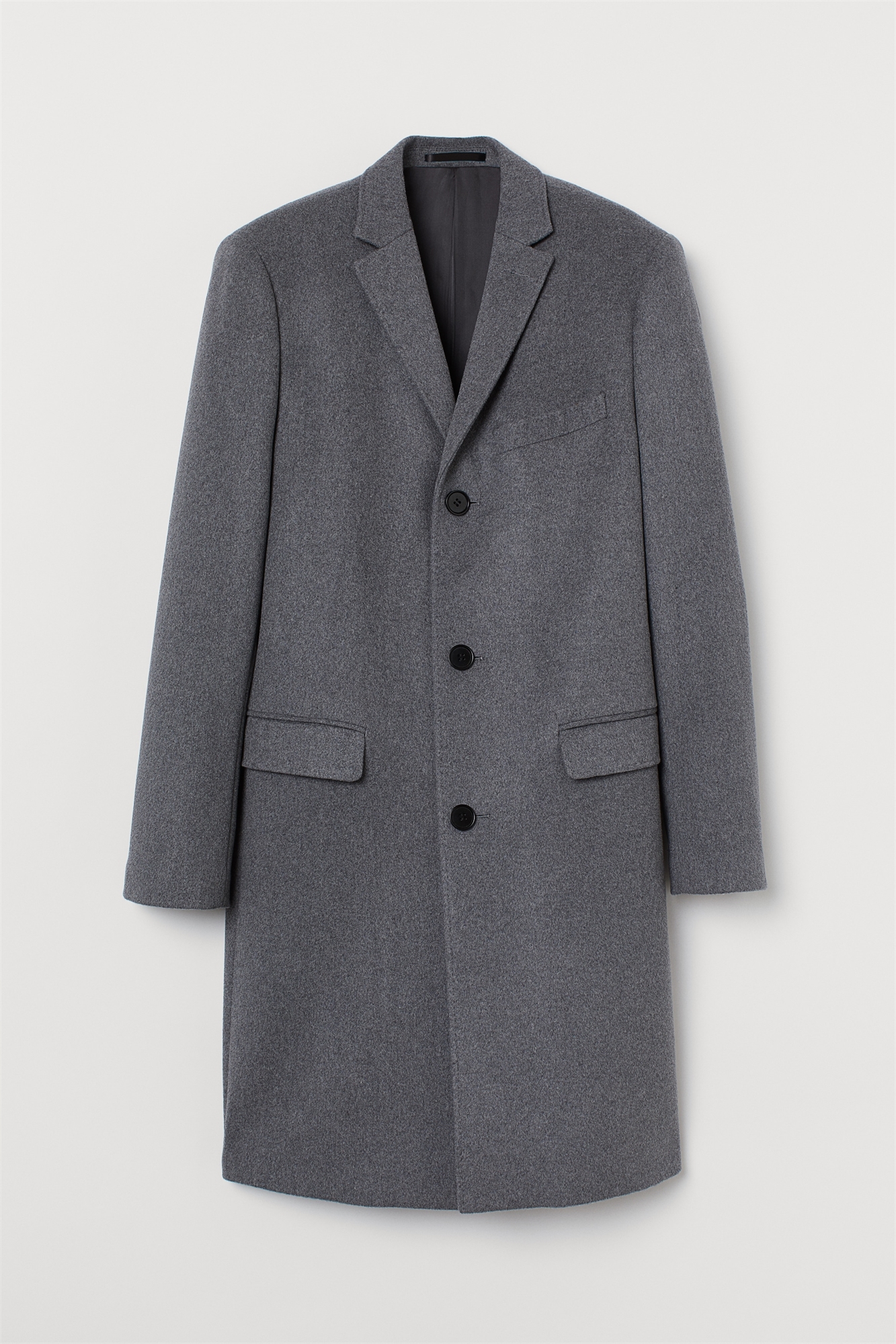 Пальто на пуговицах из мягкой, войлочной шерсти с содержанием кашемира. Пальто имеет отложной воротник с декоративной петлей для пуговицы, нагрудный карман и два накладных кармана. Два внутренних кармана и походная прорезь сзади. Подкладка из саржи, изготовленной из переработанного полиэстера. Шерсть для внешней ткани переработана.