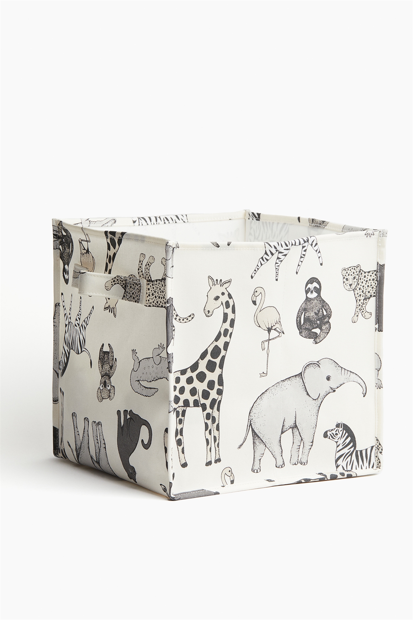Корзина для хранения из набивной хлопковой саржи с двумя ручками и скрытым металлическим бортиком в верхней части для устойчивости. Внутреннюю поверхность можно легко протереть влажной тканью. Высота 28 см. Ширина 28 см. Длина 28 см.