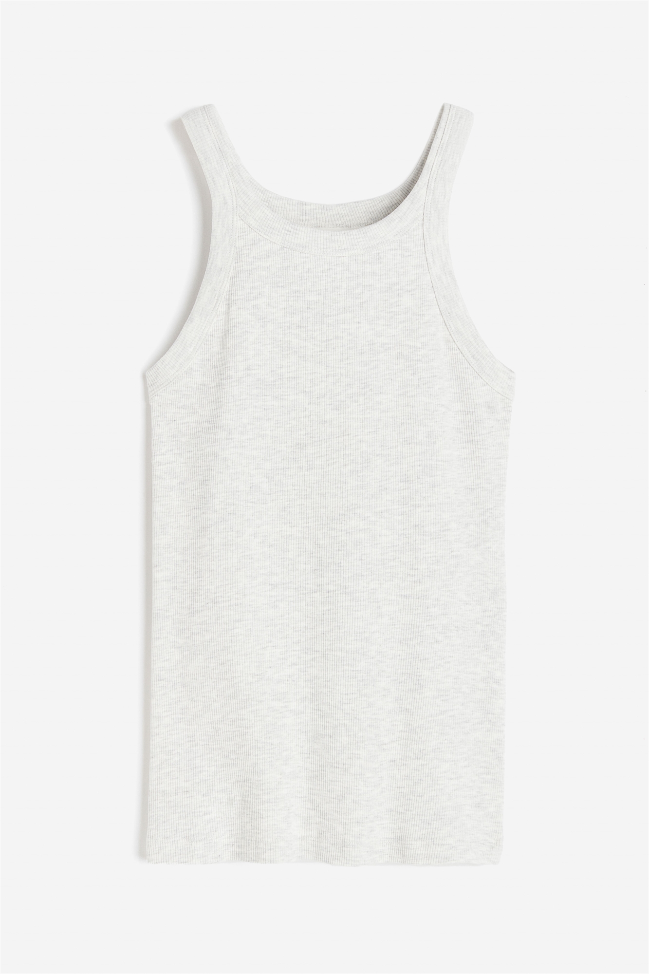 Обтягивающая майка из ребристого хлопкового джерси с круглым вырезом.