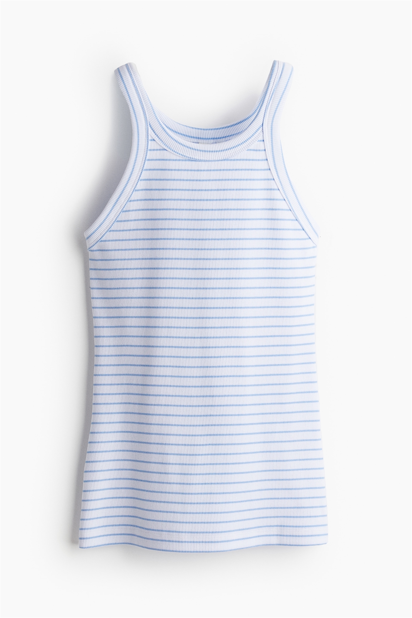 Обтягивающая майка из ребристого хлопкового джерси с круглым вырезом.