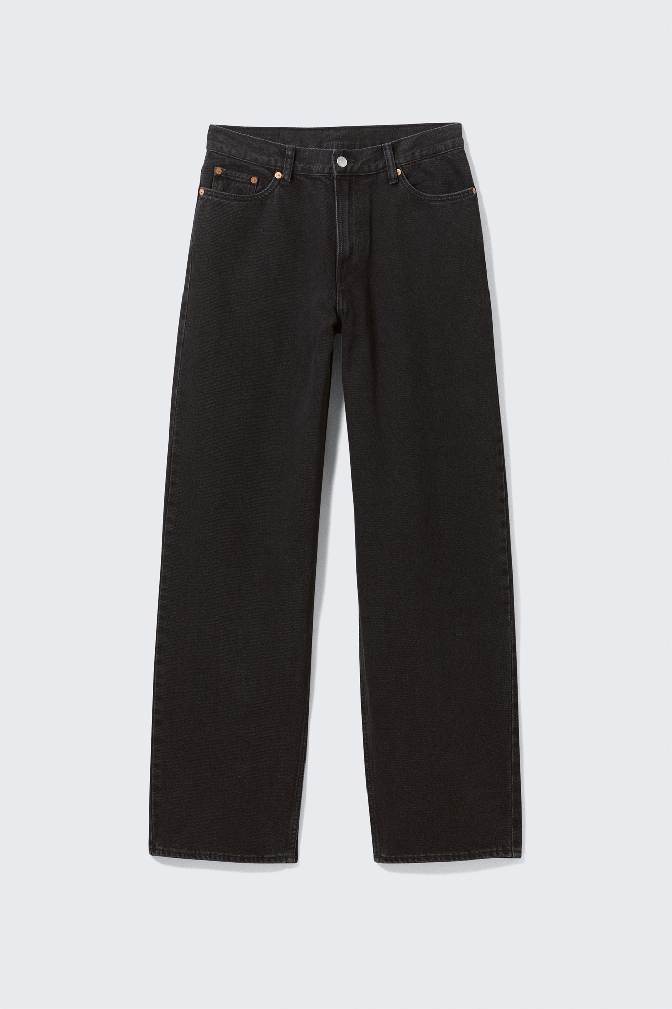 Джинсы со средней посадкой, свободным кроем, широкой штаниной и длинной длиной. Джинсы изготовлены из жесткого денима из органического хлопка с добавлением переработанного хлопка. Они имеют классический дизайн с 5 карманами и застежку-молнию.