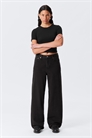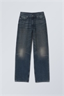 Джинсы со средней посадкой, свободным кроем, широкой штаниной и длинной длиной. Джинсы изготовлены из жесткого денима из органического хлопка с добавлением переработанного хлопка. Они имеют классический дизайн с 5 карманами и застежку-молнию.