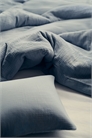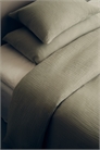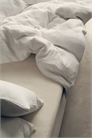 Односпальный комплект постельного белья из мягкого хлопкового муслина с количеством нитей 250, в котором прохладно и комфортно спать. Пододеяльник застегивается снизу на потайные металлические кнопки. Одна наволочка с отверстием для конверта.