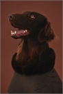 Вощеное пальто для собаки из тканого материала с воротником и подкладкой из войлока. Отверстие для поводка в верхней части. Нижняя часть с отверстиями для передних лап и регулируемым крючком и петлей, застегивающимся на спине. Эластичные ремни для задних лап, чтобы пальто держалось на месте.