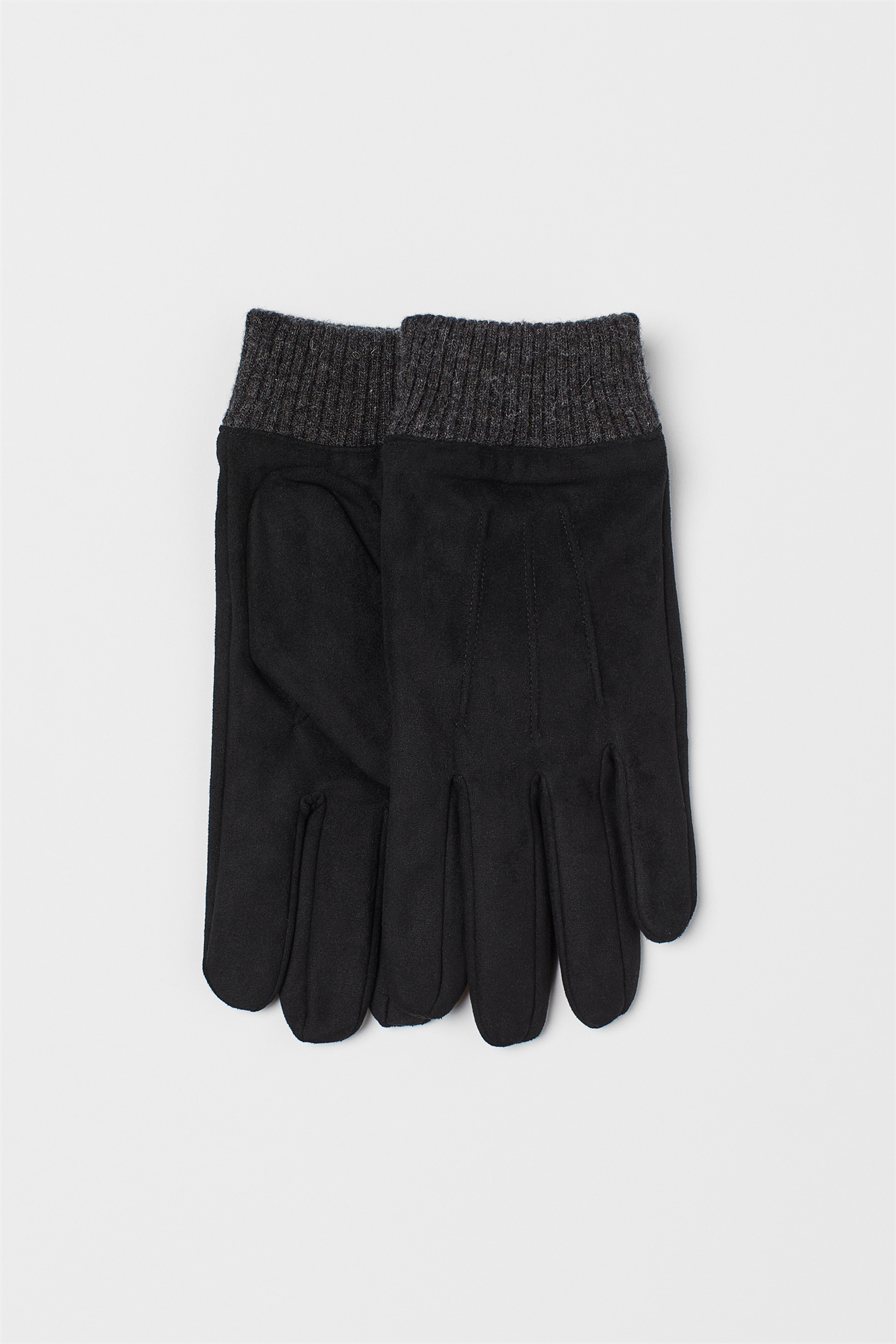 Перчатки из мягкой имитации замши с ребристыми манжетами из шерстяной смеси. На подкладке.
