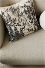 Чехол для подушки из хлопкового холста с принтом на лицевой стороне и однотонной изнанкой. Потайная застежка-молния с одной стороны.