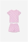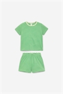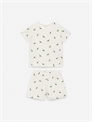 Мягкий пижамный комплект сшит из хлопкового джерси с нежной ребристой текстурой. В комплект входят футболка обычного покроя и шорты с эластичной талией.