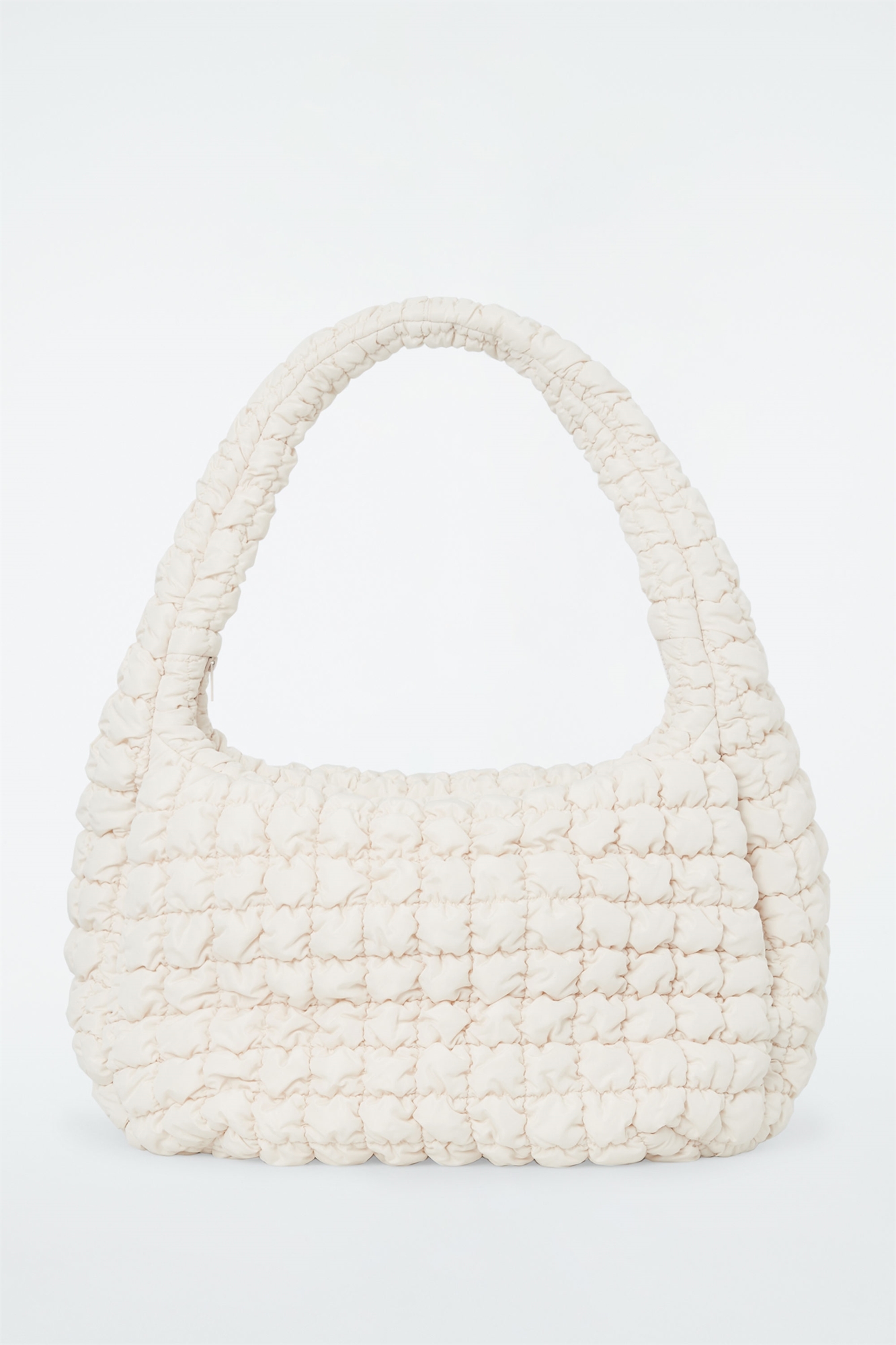 Стеганая сумка - один из краеугольных камней каждой коллекции COS. Эту большую модель можно носить через плечо, и в ней достаточно места для всего, что нужно для короткой поездки. Она украшена фирменным стеганым узором и изготовлена из переработанного полиэстера в светло-бежевом цвете, который сочетается со всем. Застежка-молния Лучшая альтернатива обычному полиэстеру: переработанный полиэстер изготавливается из отходов до и после переработки Внешний материал: 100% переработанный полиэстер. Подкладка: 100% хлопок. Детали исключены Размеры: 23,5 x 24 x 8,5 см.