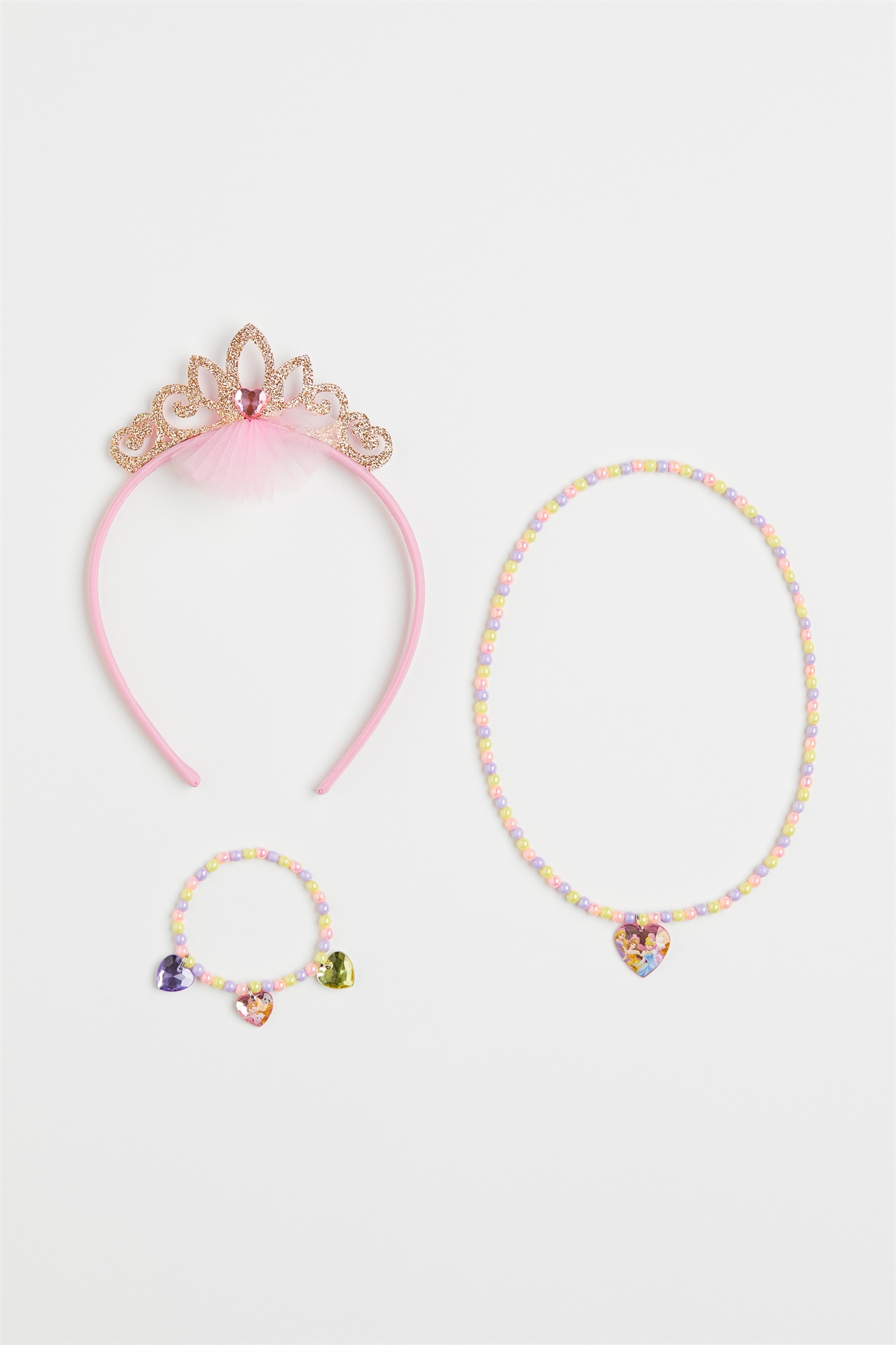 Комплект из ленты Alice, браслета и подходящего ожерелья. Атласный браслет Alice с блестящей аппликацией сверху. Ожерелье с кулоном. Браслет из мерцающих пластиковых бусин с шармами.