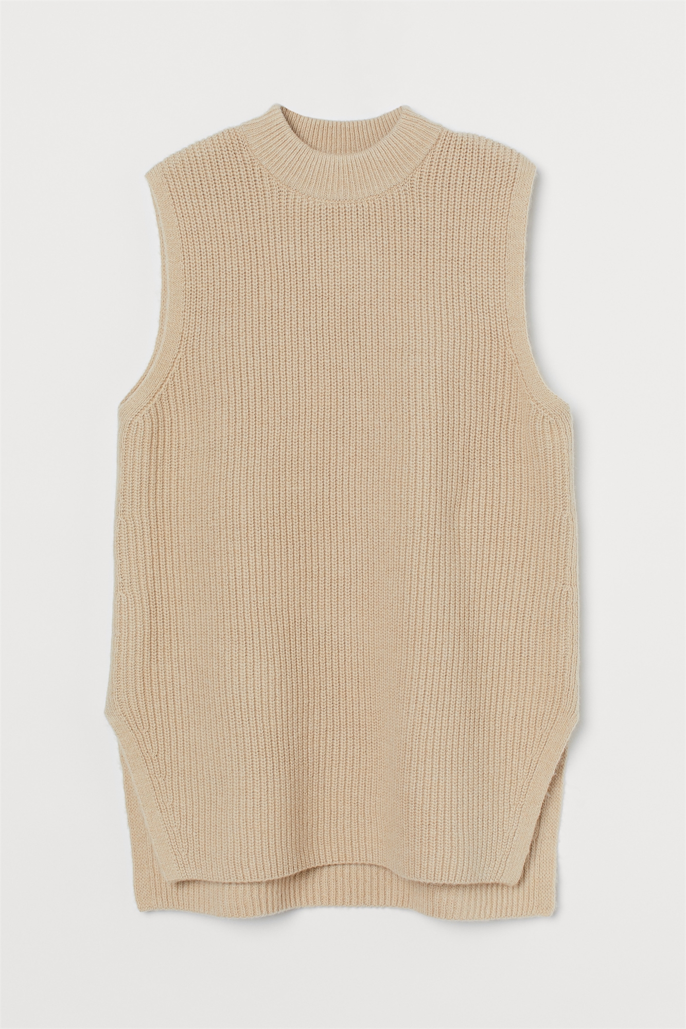 Пуловер из мягкого ребристого трикотажа с добавлением шерсти. Свободный крой, ребристые манжеты на горловине, боковые разрезы и немного удлиненная спинка. Полиэстер, входящий в состав пуловера, является переработанным.