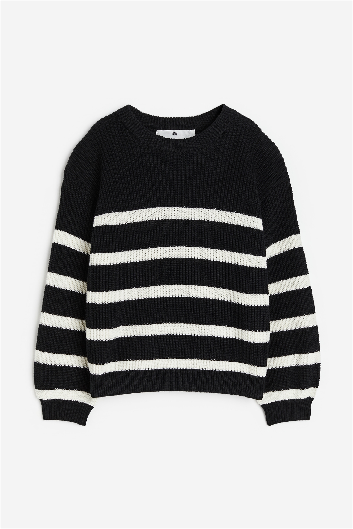 Джемпер из мягкого хлопка фактурной вязки с длинными пышными рукавами и отделкой в рубчик по вырезу горловины, манжетам и подолу.