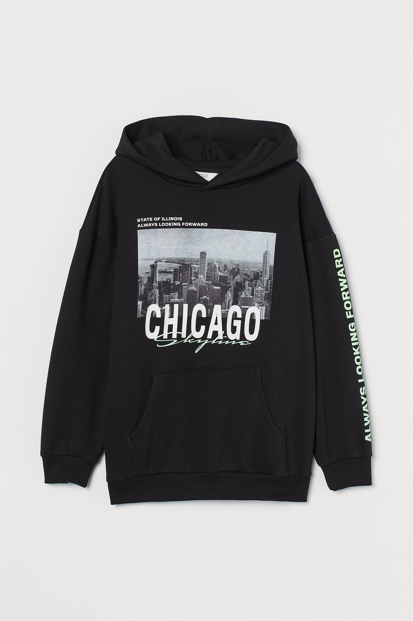 Толстовка оверсайз из мягкой ткани с принтом и мягким начесом внутри. Двухслойный капюшон, сильно спущенные плечи, длинные рукава, ребристые манжеты и подол. Полиэстер частично переработан.