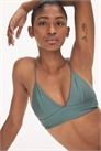 Бикини на подкладке, без проводов, с узкими регулируемыми бретелями, перекрещивающимися сзади. Треугольные чашечки со съемными вкладышами, которые придают форму бюсту и обеспечивают хорошую поддержку. Без застежек.