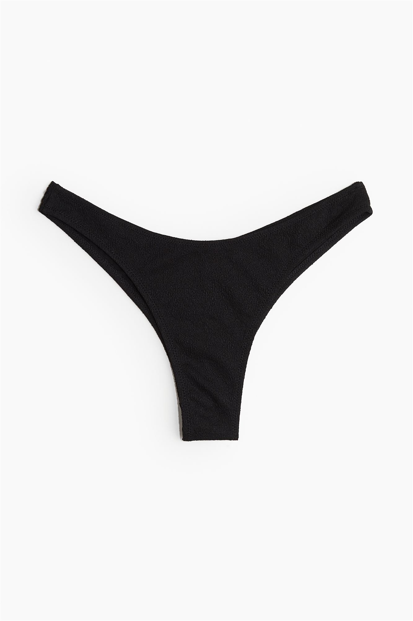 Полностью на подкладке, ребристые трусы-бикини со средней талией и высоким разрезом сзади.