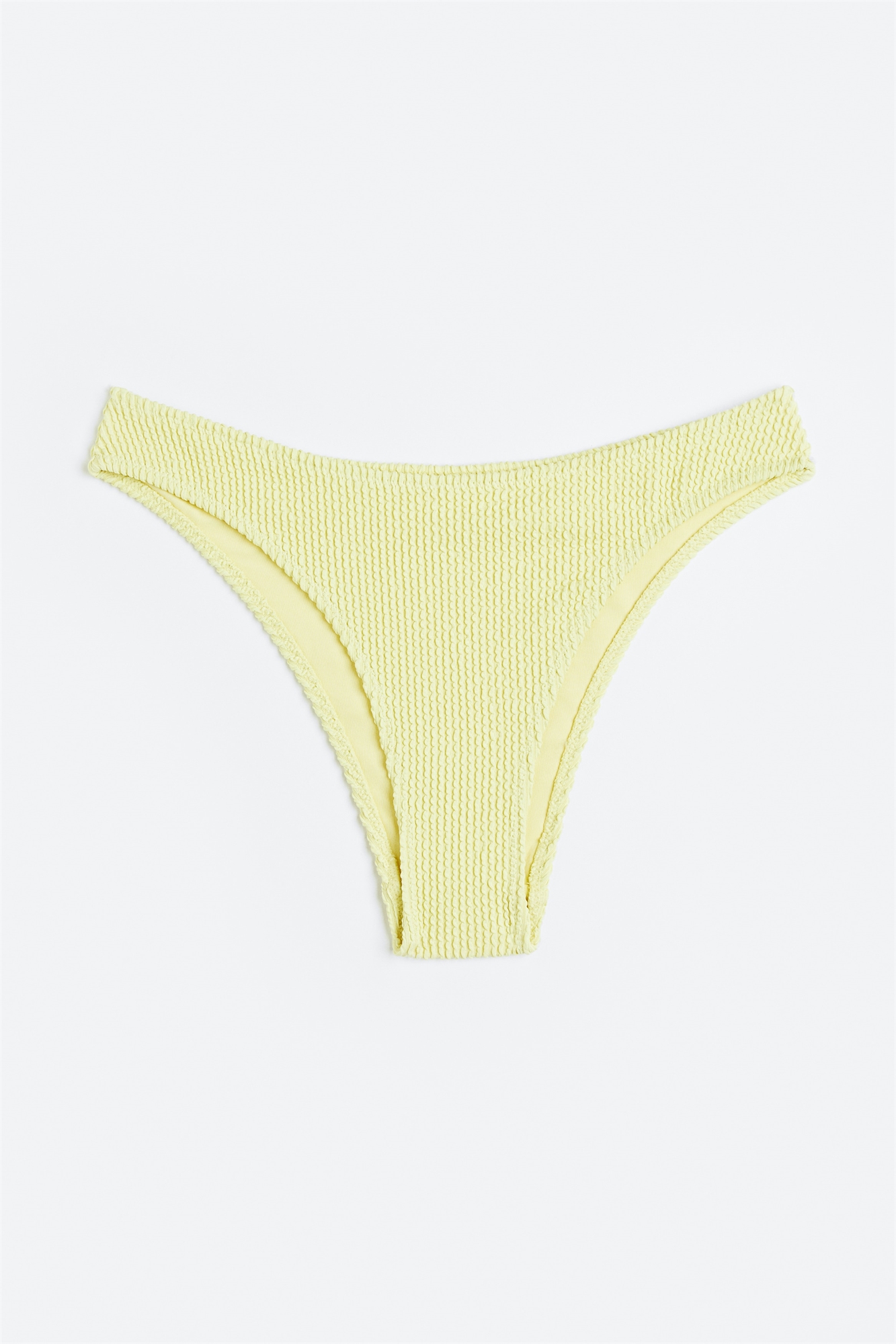 Трусики-бикини на подкладке с фактурной отделкой, средней талией и вырезом сзади.