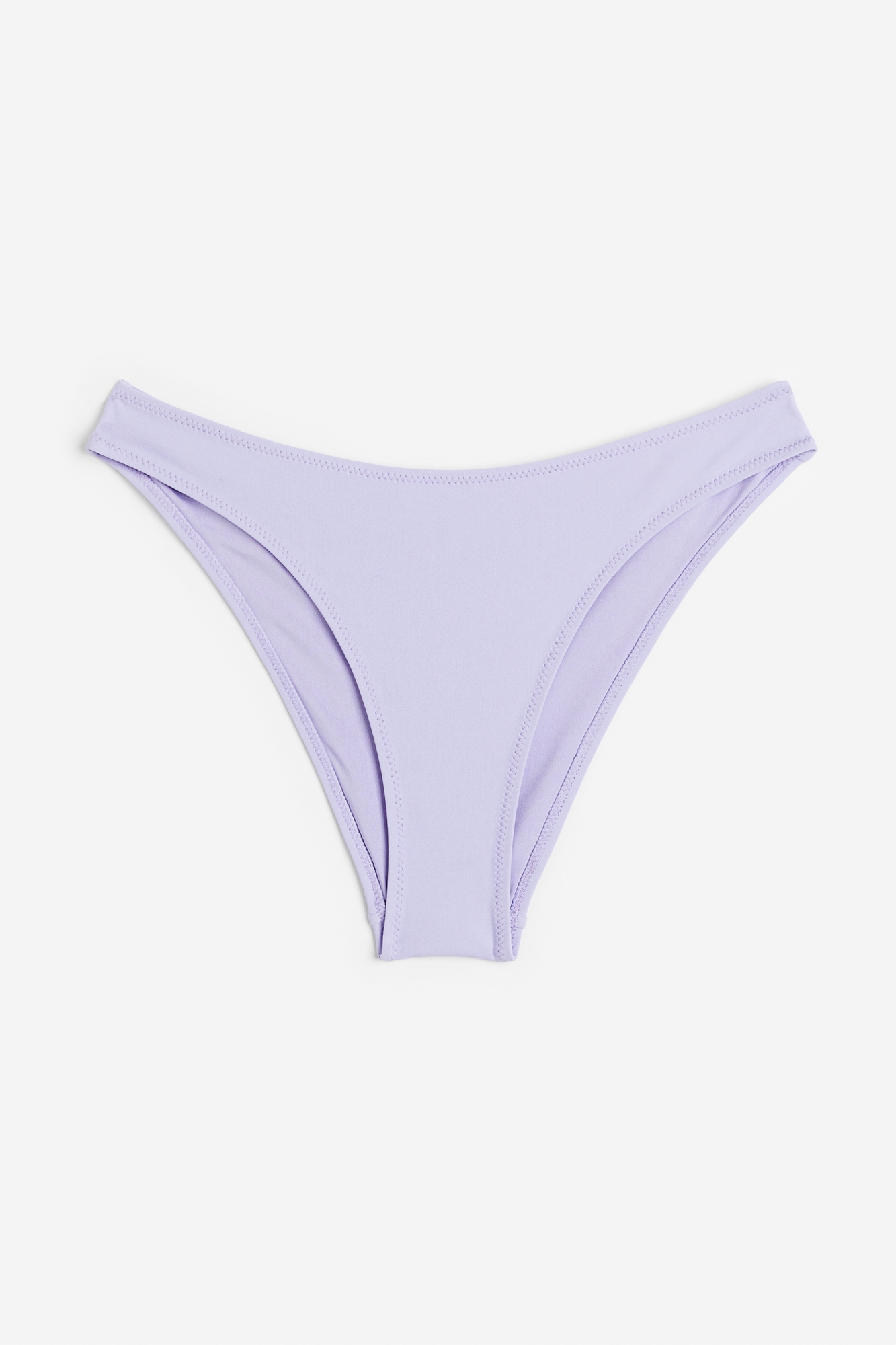 Трусики-бикини на подкладке с фактурной отделкой, средней талией и вырезом сзади.