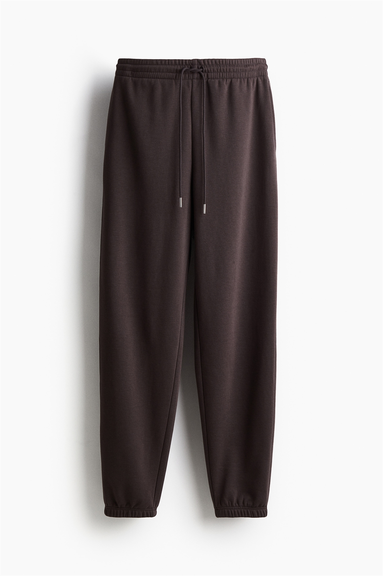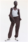Тренировочные брюки из мягкой ткани из смеси хлопка. Высокая талия с утяжкой и эластичным поясом, боковые карманы и утяжка по краям. Мягкая начесанная внутренняя сторона.