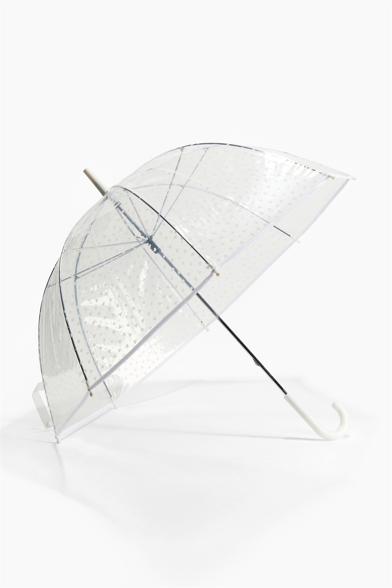 Зонт с прозрачным пластиковым козырьком и пластиковой ручкой. Диаметр 78 см.