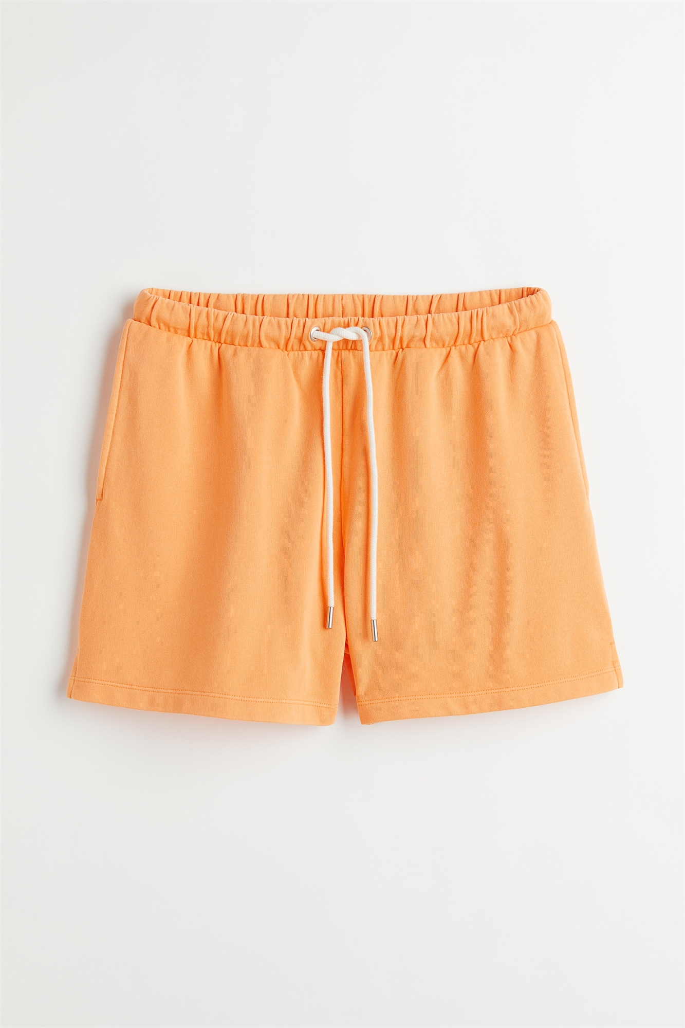 Шорты из легкой ткани с эффектом пота. Регулярная высота, эластичный пояс с завязками, карманы в боковых швах и прямые ноги с боковыми разрезами.