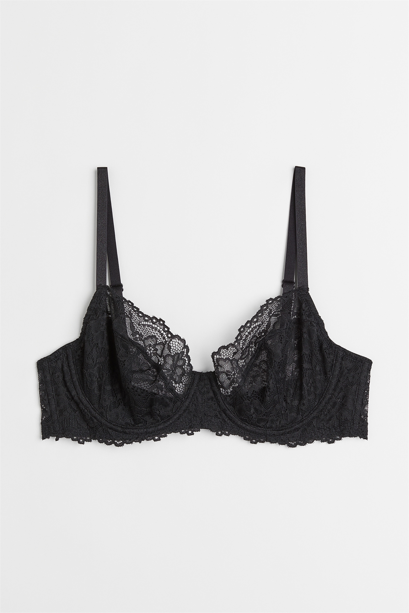 Кружевной бюстгальтер без подкладки с чашечками на сетчатой подкладке, придающими груди естественную форму и обеспечивающими легкую поддержку. Регулируемые бретели и застежка на крючок сзади.