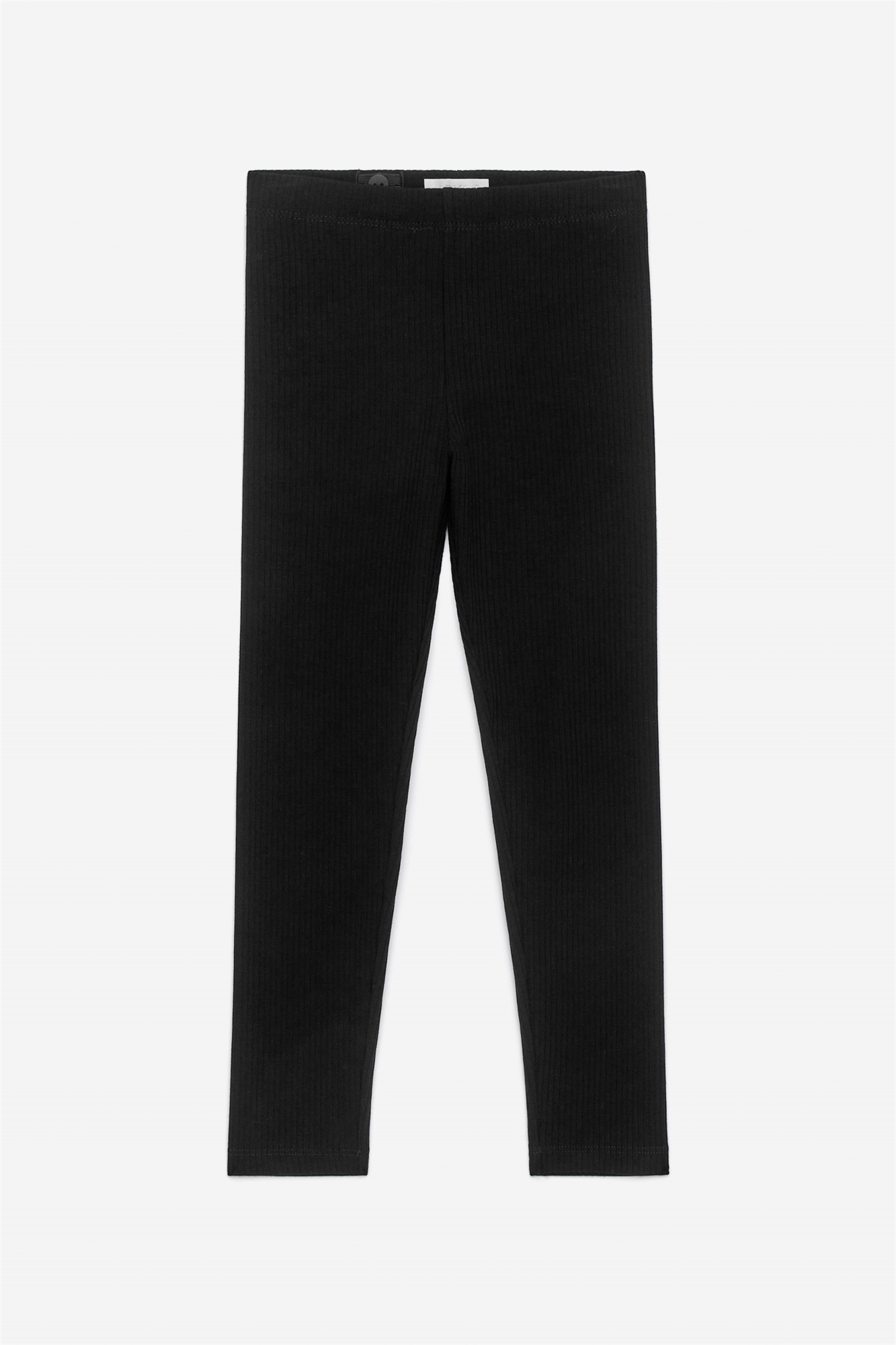 Леггинсы из мягкого и эластичного трикотажа в рубчик. Регулируемая резинка на талии.