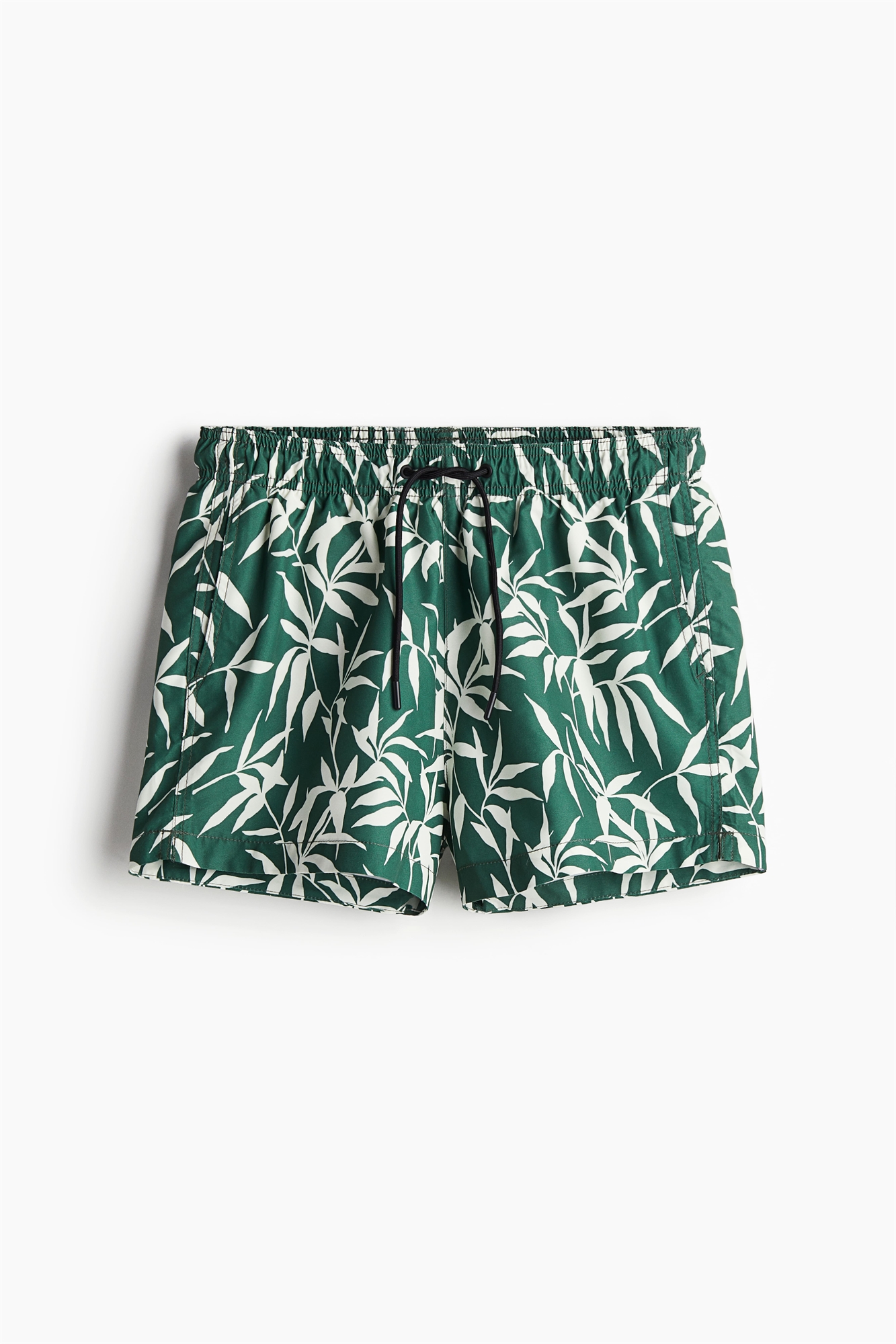 Шорты для плавания с узорчатым плетением, эластичной отделкой и завязкой на талии. Боковые карманы, открытый задний карман и ножки с разрезами по бокам. Внутренние шорты из сетки.