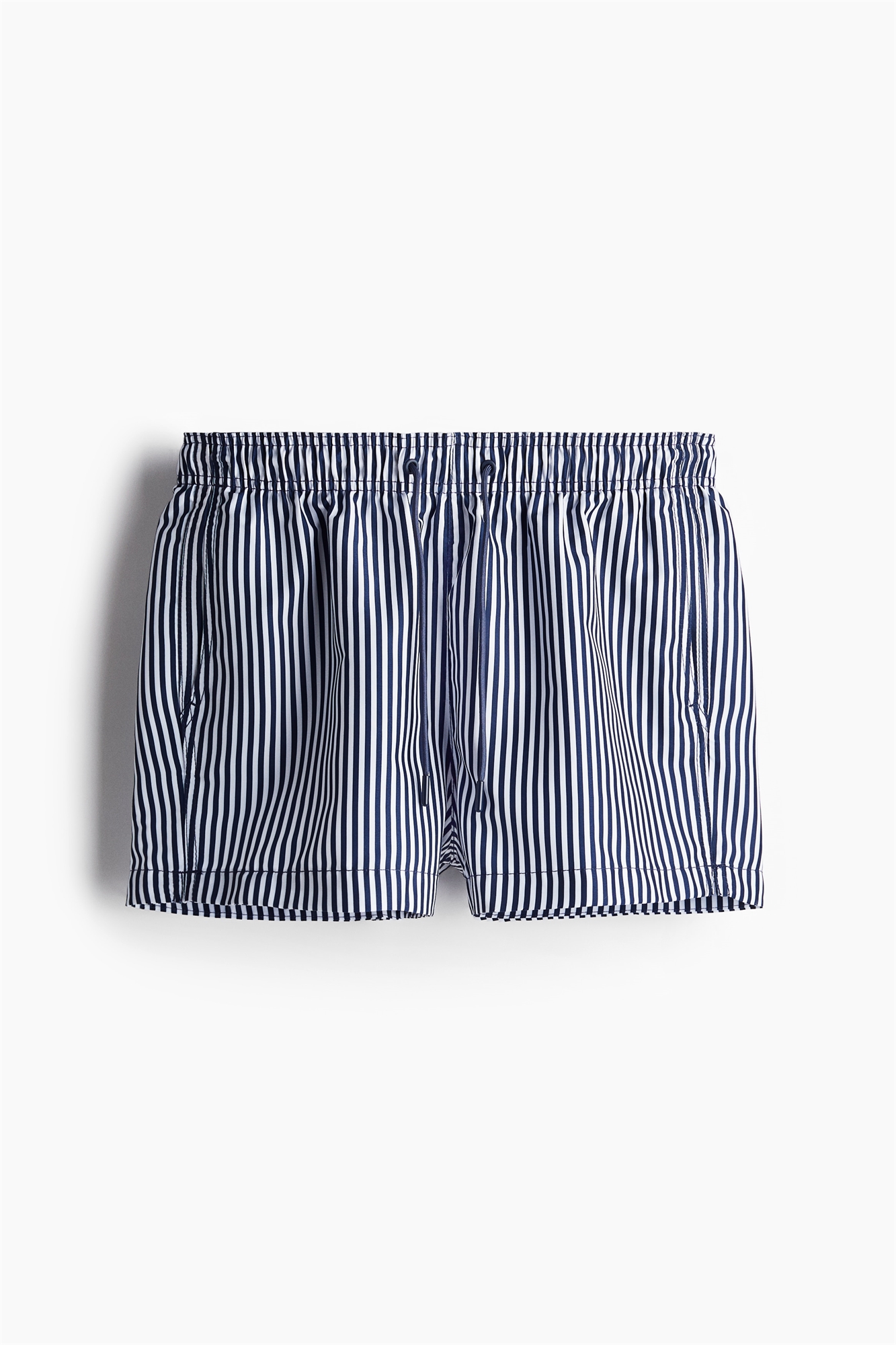 Шорты для плавания с узорчатым плетением, эластичной отделкой и завязкой на талии. Боковые карманы, открытый задний карман и ножки с разрезами по бокам. Внутренние шорты из сетки.