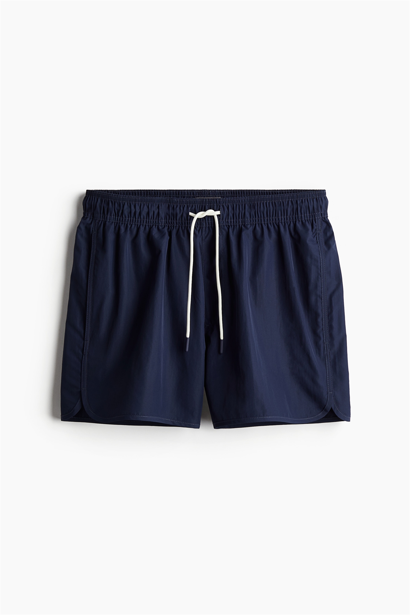 Шорты для плавания из тканого материала с эластичным покрытием и завязкой на талии, боковыми карманами и разрезом по бокам. Внутренние шорты из сетки.