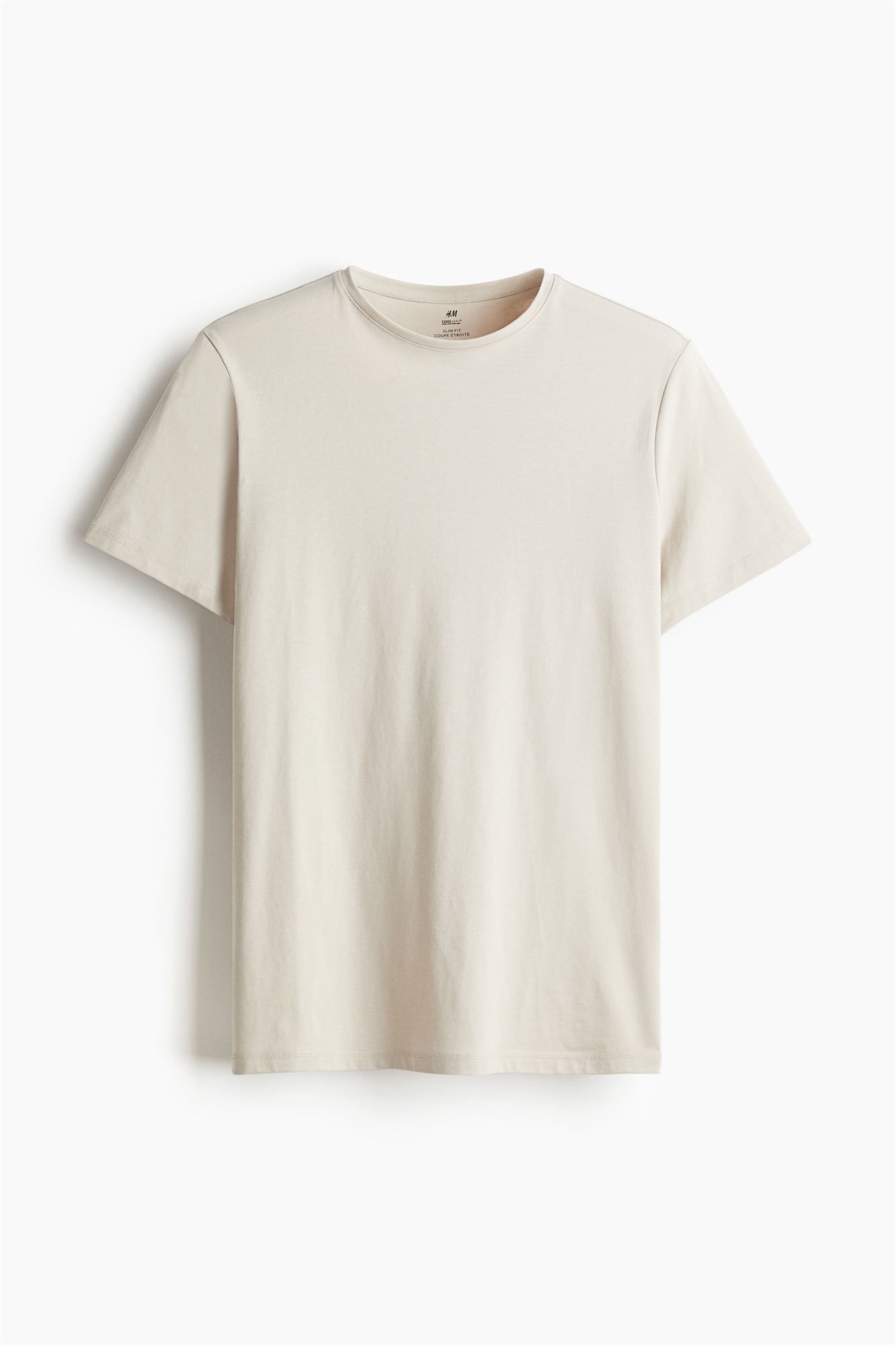 Футболка из легкого трикотажа с круглым вырезом с ребристой отделкой и прямым покроем. Облегающий крой, облегающий контуры тела, создающий приталенный силуэт. Изготовлена с использованием волокна COOLMAX® - волокна с инженерными каналами, которое отводит влагу от тела на поверхность ткани.