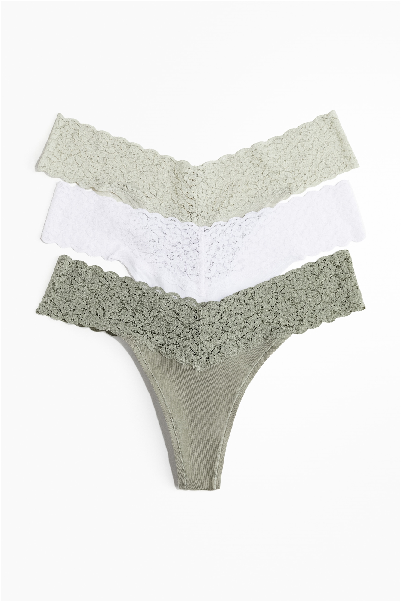 Трусы-стринги из кружева с заниженной V-образной талией, ластовицей и завязками сзади.