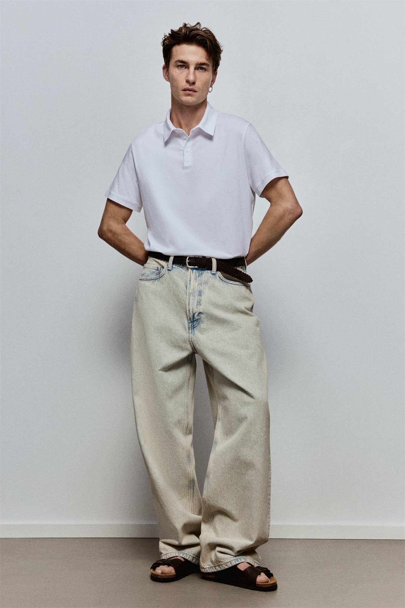 Рубашка-поло из легкого хлопкового джерси с воротником, застежкой на пуговицы, короткими рукавами и прямым покроем. Зауженный крой, облегающий контуры тела и создающий приталенный силуэт.