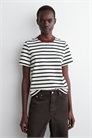 Классическая футболка получила современное обновление в виде неокрашенной ткани. Изготовленная из супермягкого органического хлопка натурального оттенка, она имеет свободный крой и контрастный воротник для современного образа. Круглый вырез Короткие рукава Органический хлопок выращен из негенетически модифицированных семян без использования химических удобрений и пестицидов 100% органический хлопок / Машинная стирка Длина по спинке для размера S составляет 54,2 см / Рост модели 176 см, носит размер S
