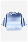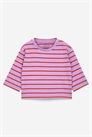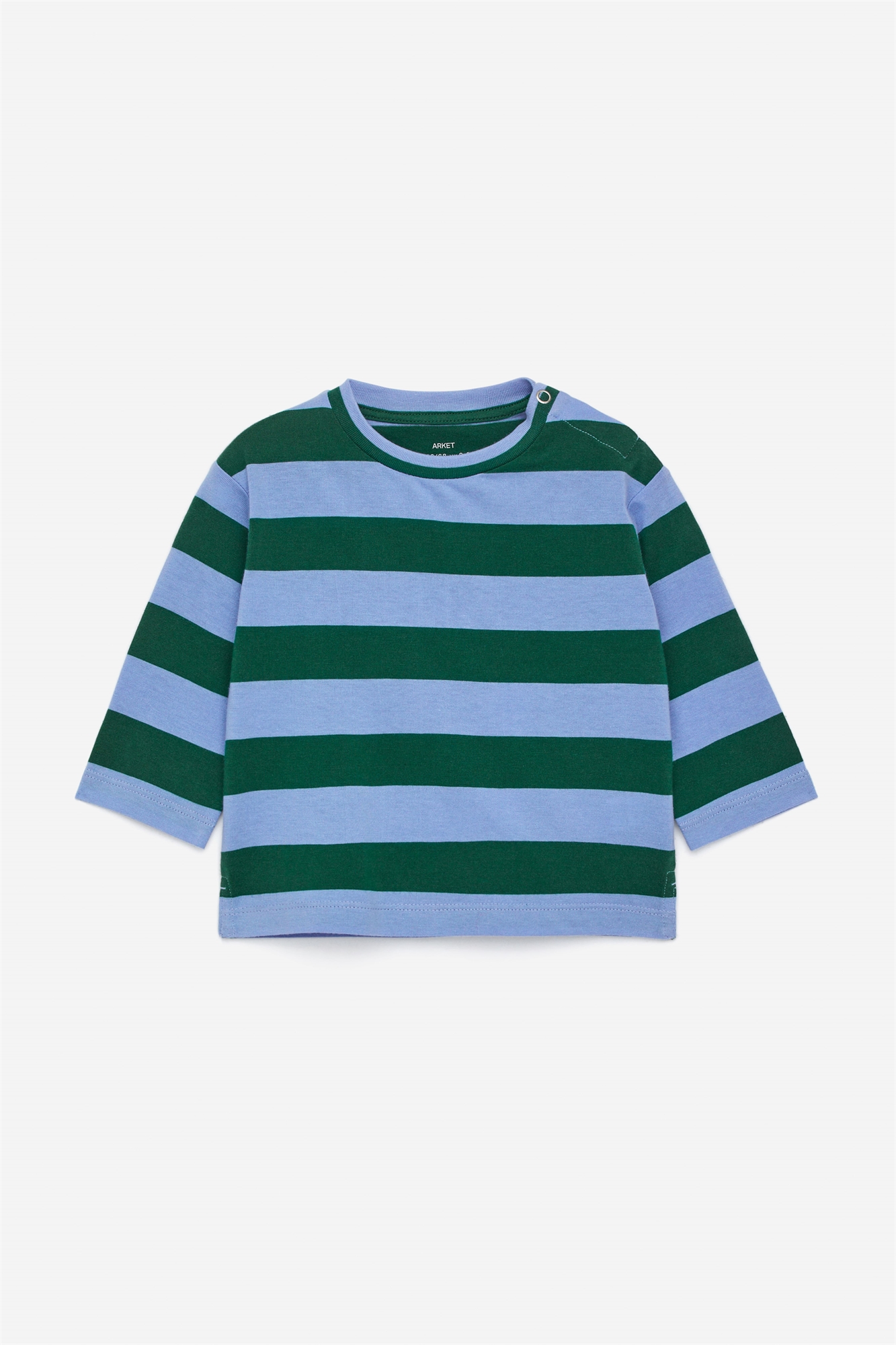 Топ с длинными рукавами сшит из мягкого хлопкового джерси. Модель с круглым вырезом и застежкой на пуговицы на левом плече для удобства одевания. Небольшие разрезы в боковых швах.