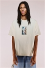 Футболка из хлопкового джерси средней плотности с принтом, круглым вырезом с ребристой отделкой, спущенными плечами и прямым покроем. Свободный крой для объемного, но не чрезмерно большого силуэта.
