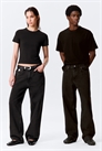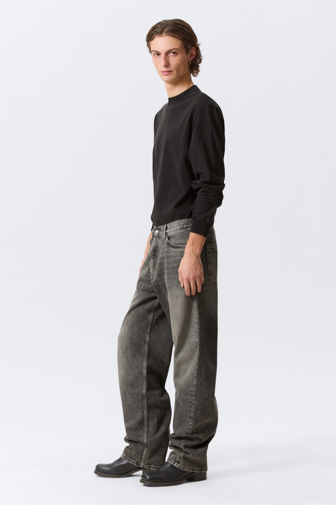 Джинсы унисекс средней посадки с свободным кроем и прямыми брючинами. Эти джинсы изготовлены из жесткого денима из органического хлопка с добавлением переработанного хлопка. Они имеют классический дизайн с пятью карманами и застежкой-молнией.