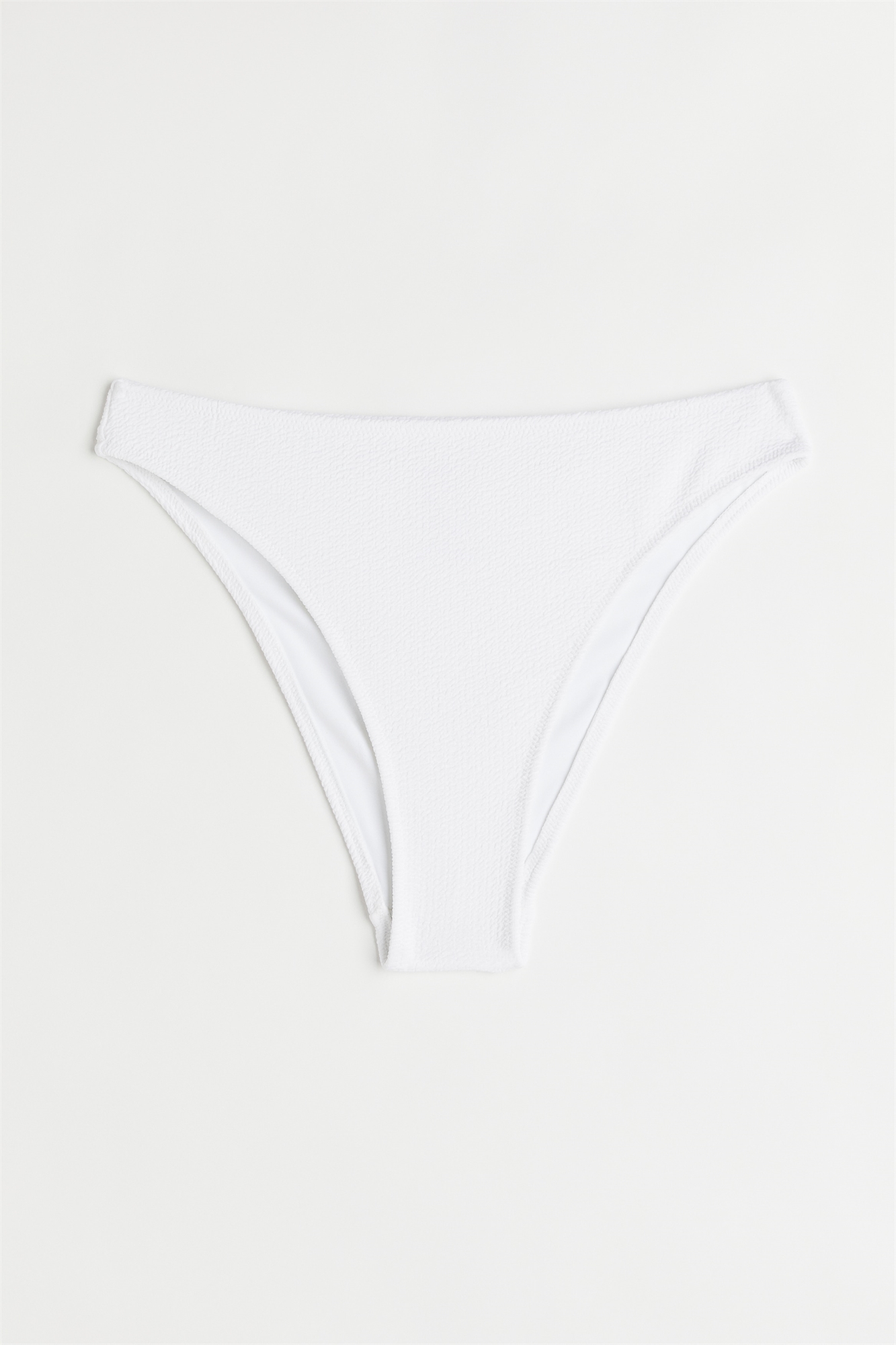 Полностью на подкладке, бикини с высокой талией, вырезом на ноге и полуприкрытой спиной.