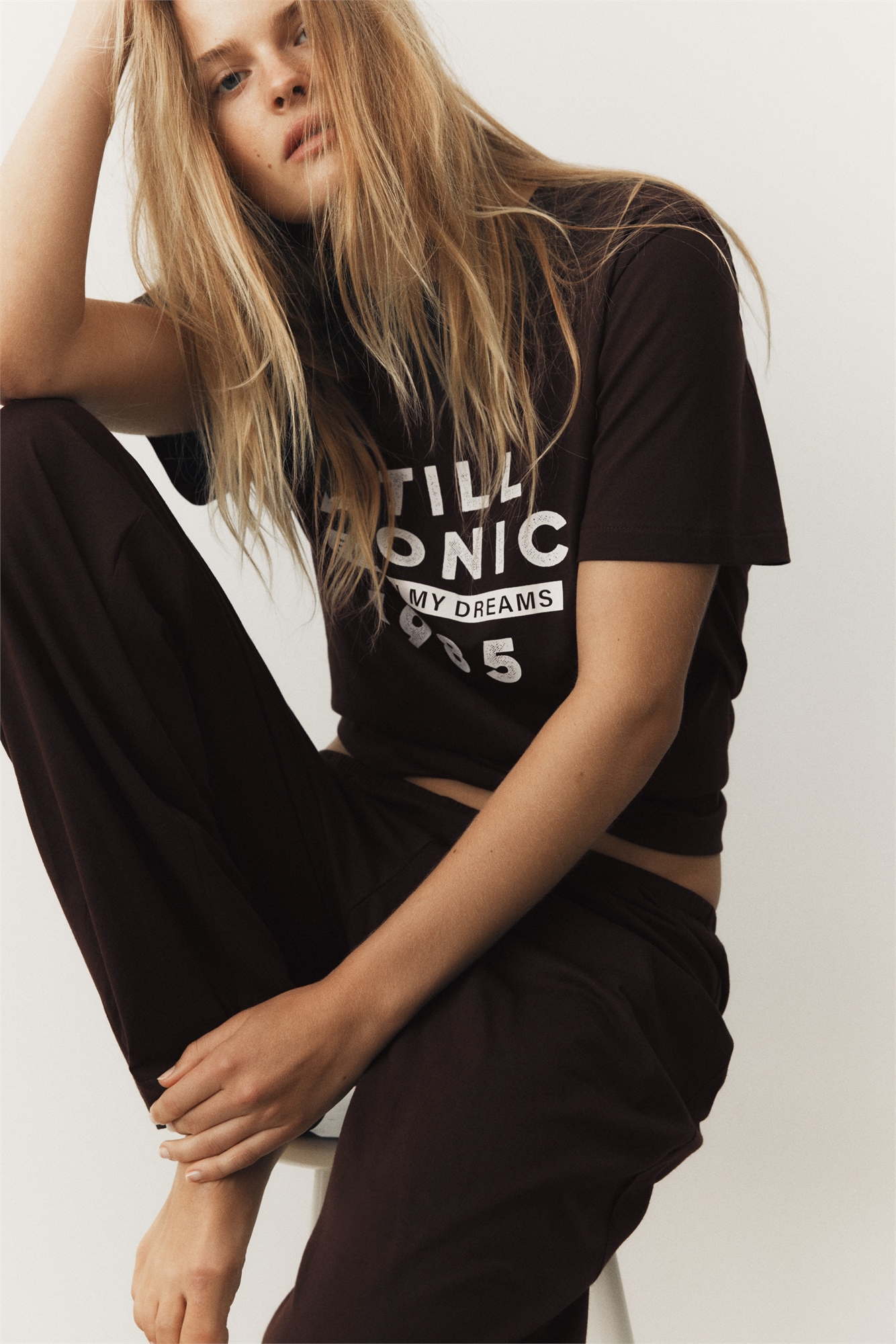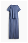 Пижама из узорчатого джерси из смеси хлопка. Верхняя часть в непринужденном стиле, со спущенными плечами, короткими рукавами и разрезами по бокам подола. Низ с эластичной вставкой на талии и манжетами по краям.