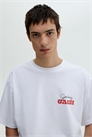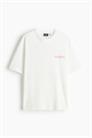 Футболка из мягкого принтованного хлопкового джерси средней плотности, со спущенными плечами и круглым вырезом с узкой окантовкой. Свободный крой для объемного, но не чрезмерно большого силуэта.