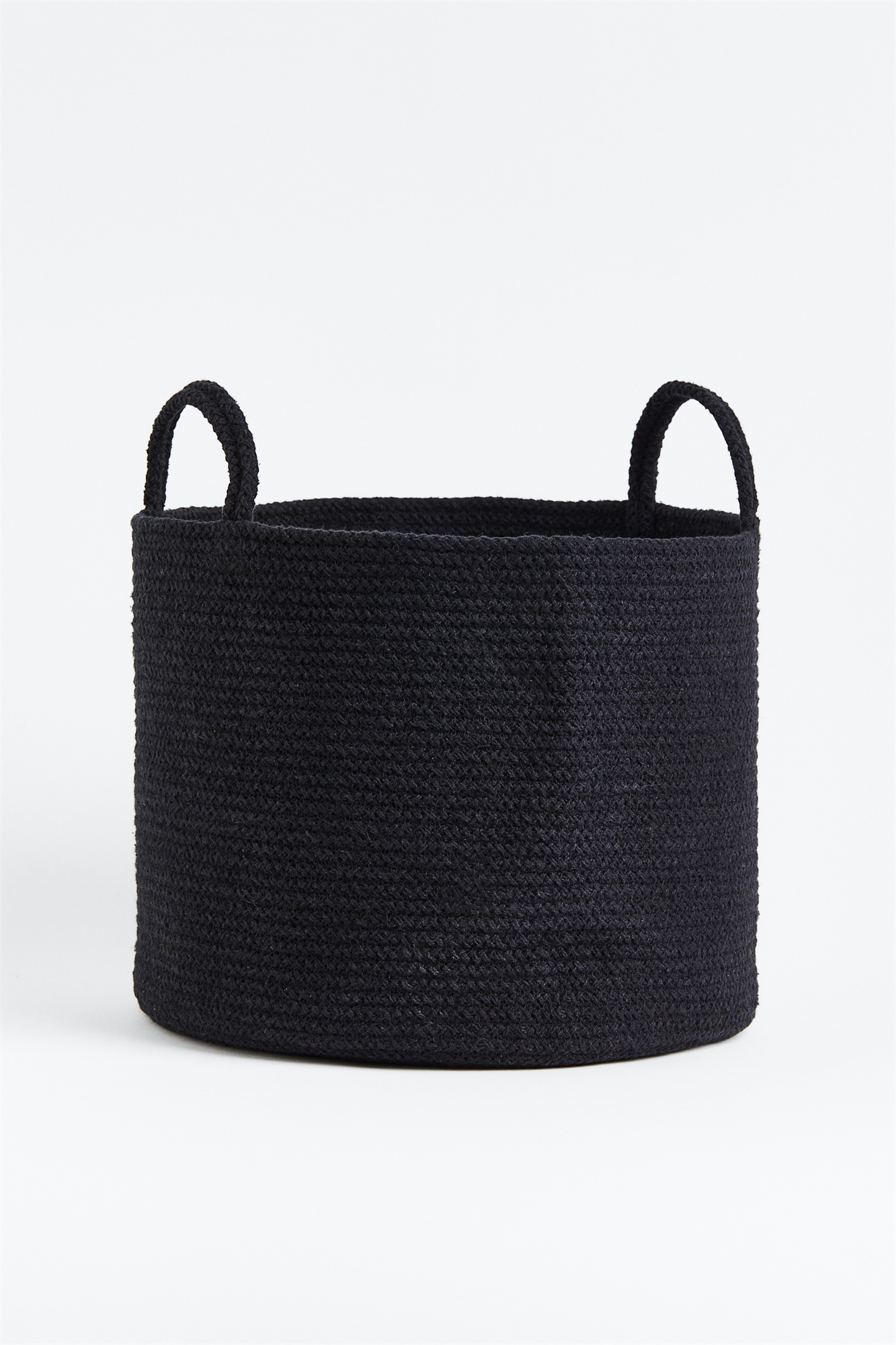 Корзина для хранения из прочной хлопковой ткани с двумя ручками для переноски. Диаметр 35 см, высота 28 см.