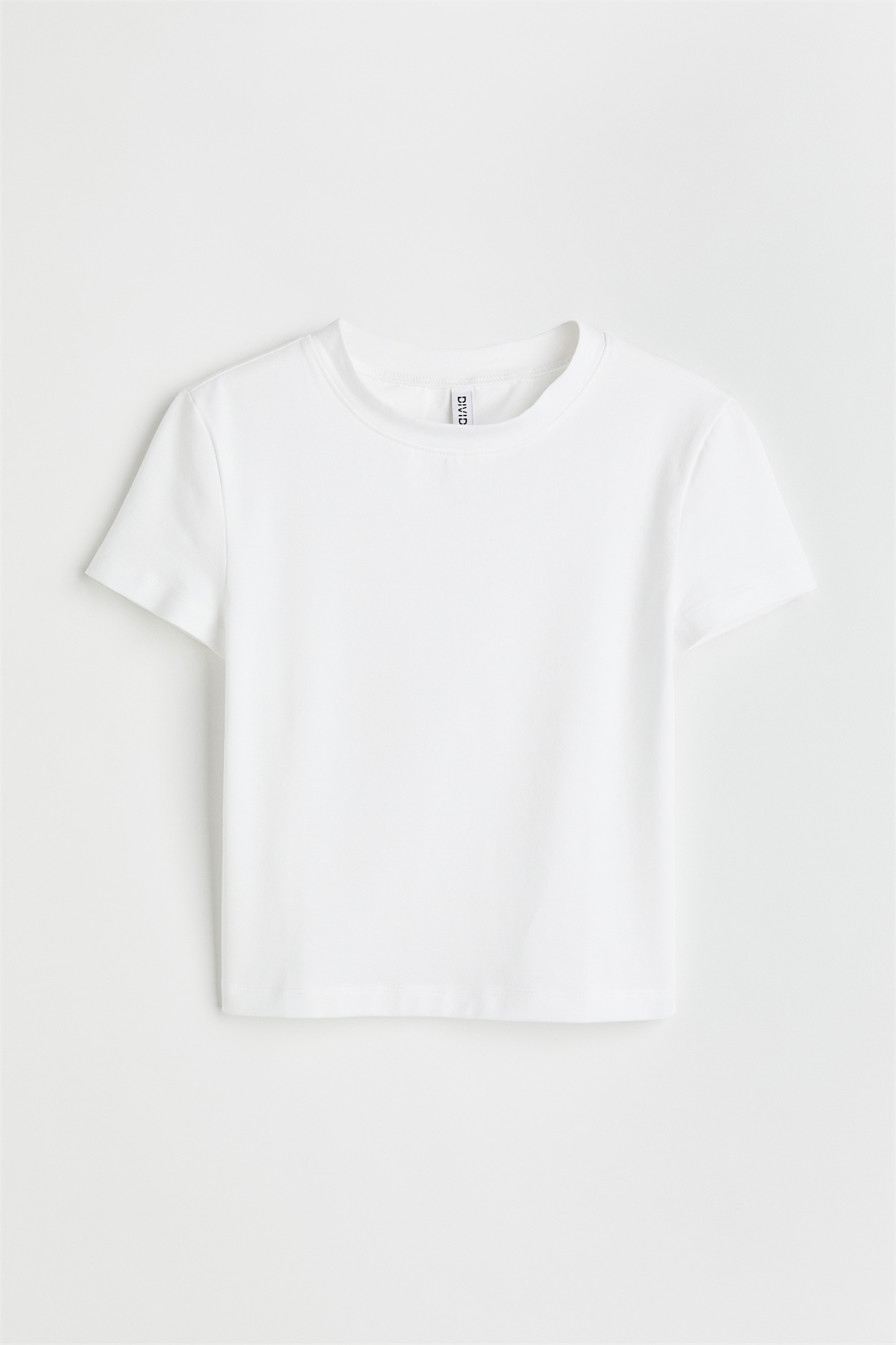 Короткая футболка из хлопкового джерси с круглым вырезом и короткими рукавами.