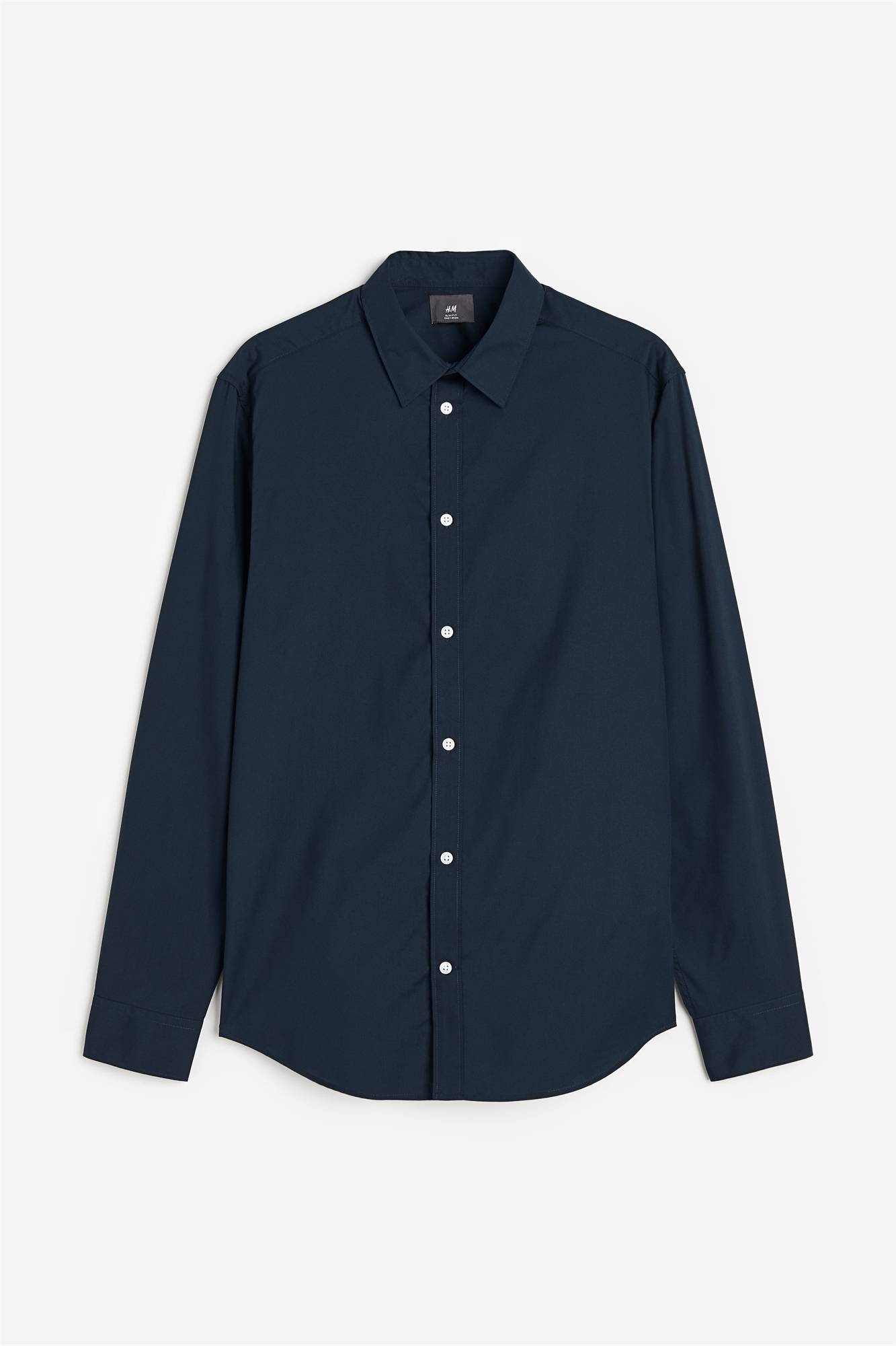 Рубашка облегающего кроя из тканого материала с легкой глажкой. Отложной воротник, классическая передняя часть, вытачки и ушко сзади. Длинные рукава с регулируемыми пуговицами на манжетах и рукавной планкой с пуговицей. Аккуратный закругленный подол.
