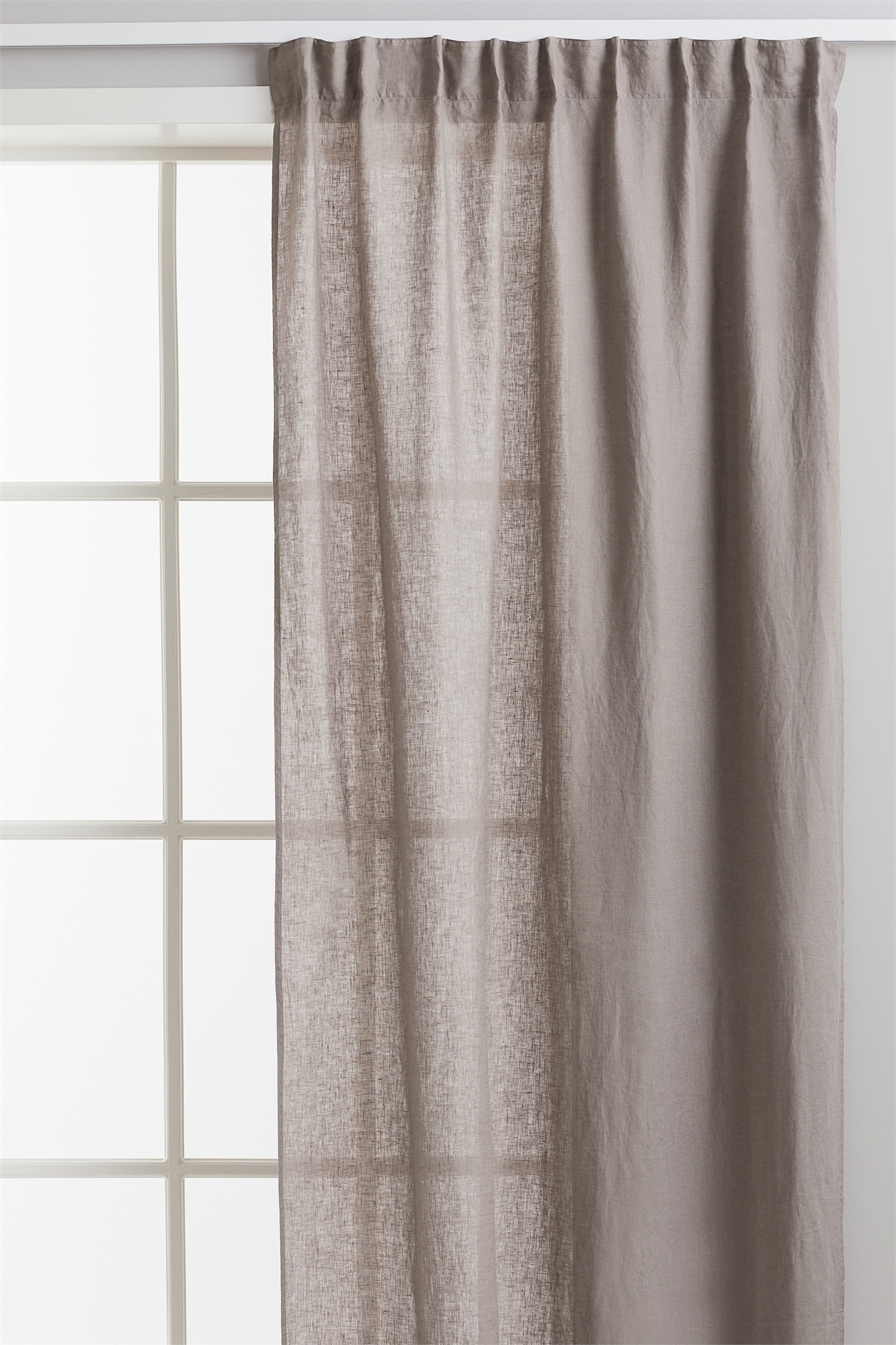 Пара длинных штор из льна с многосторонней завязкой для четырех вариантов подвешивания: на карнизе с петлями для штор, на крючках для штор, на крючках для штор с четырьмя когтями или в современном стиле "волна". Крючки в комплект не входят.