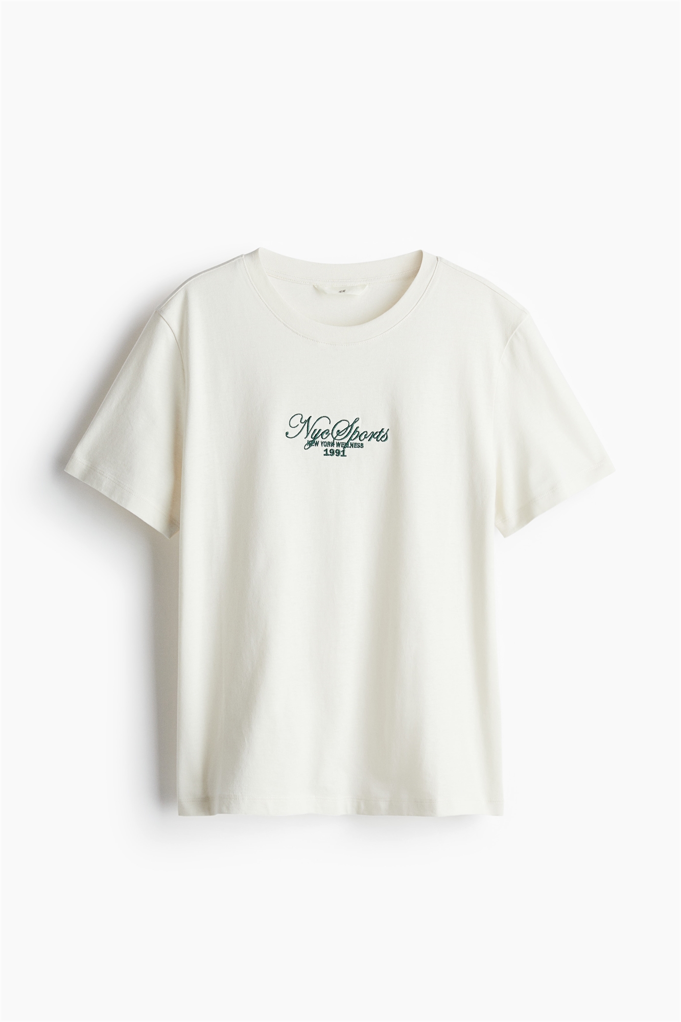 Футболка из мягкого хлопкового джерси с круглым вырезом с ребристой отделкой.