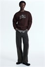 Топ из толстовки средней плотности из смеси хлопка с мягкой начесанной внутренней стороной и принтом. Круглый вырез с ребристой отделкой, манжеты и подол в рубчик. Свободный крой для пышного, но не чрезмерно большого силуэта.