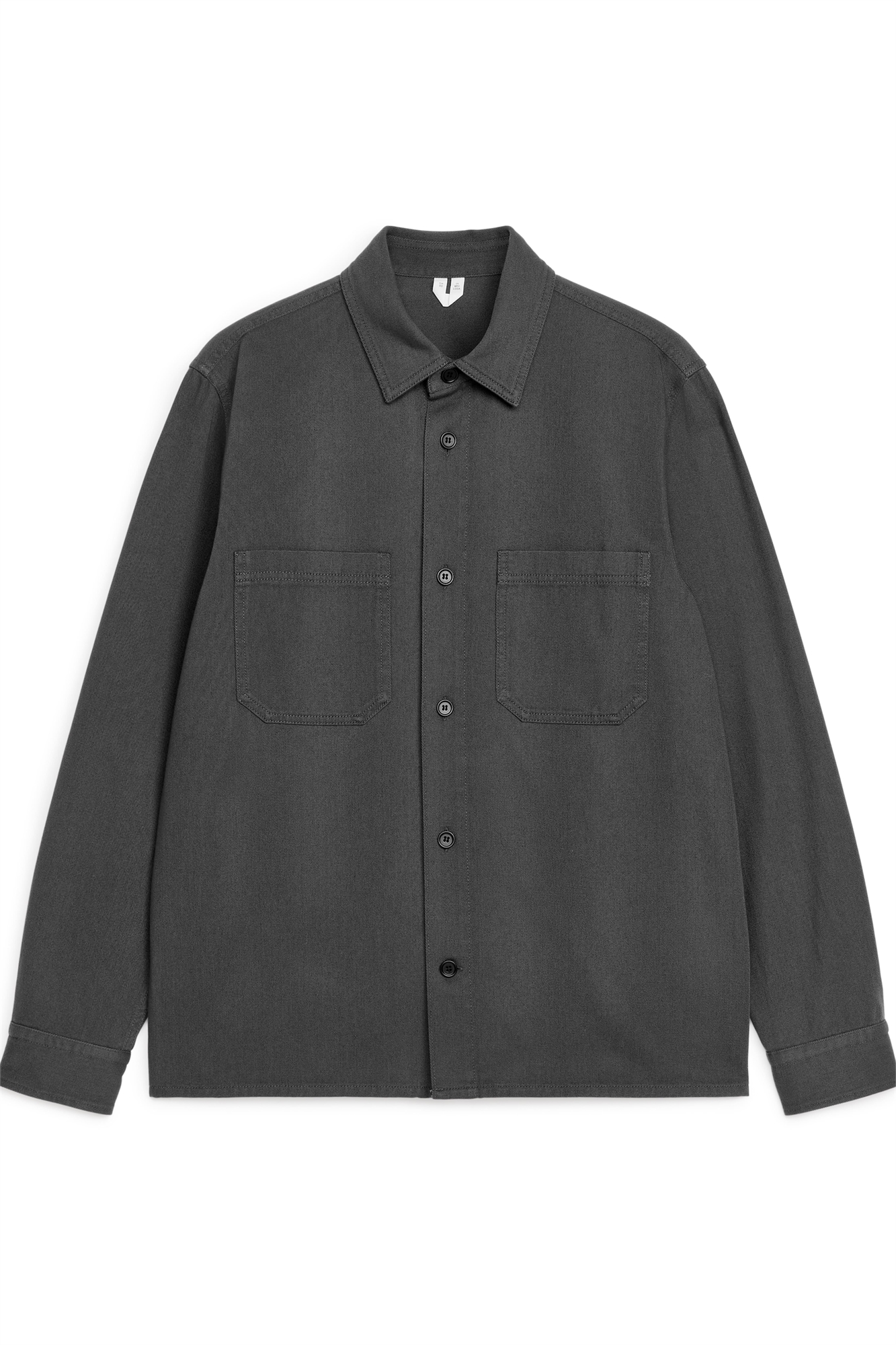Рубашка оверсайз из гладкой хлопковой ткани саржевого переплетения. Модель прямого покроя с двумя нагрудными карманами, обычным воротником и задними складками. Манжеты на пуговицах. Пуговицы Corozo из ореха тагуа.