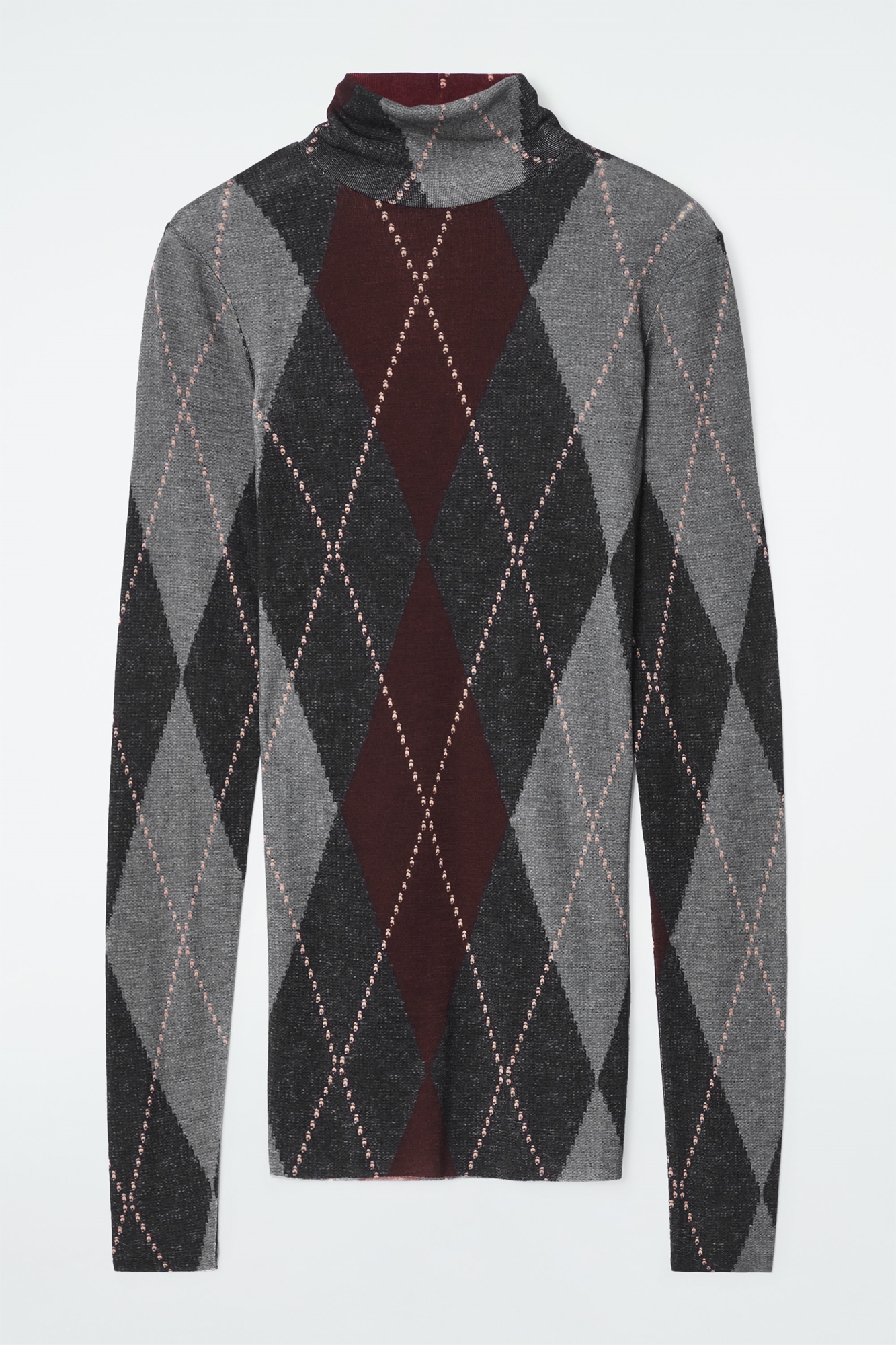 Этот узорчатый топ из чистой мериносовой шерсти с высоким воротником-стойкой, выполненный в современном стиле аргайл. Он имеет аккуратный зауженный крой, что делает его идеальной вещью для межсезонья. Облегающий крой Необработанные края Этот продукт содержит шерстяное волокно Responsible Wool Standard TE-00047206 (RWS) с ферм, сертифицированных в соответствии с требованиями к благополучию животных и землепользованию Шелл: 100% мериносовая шерсть. Без учета отделки / Машинная стирка Длина по спинке для размера S составляет 66 см / Модель носит размер S