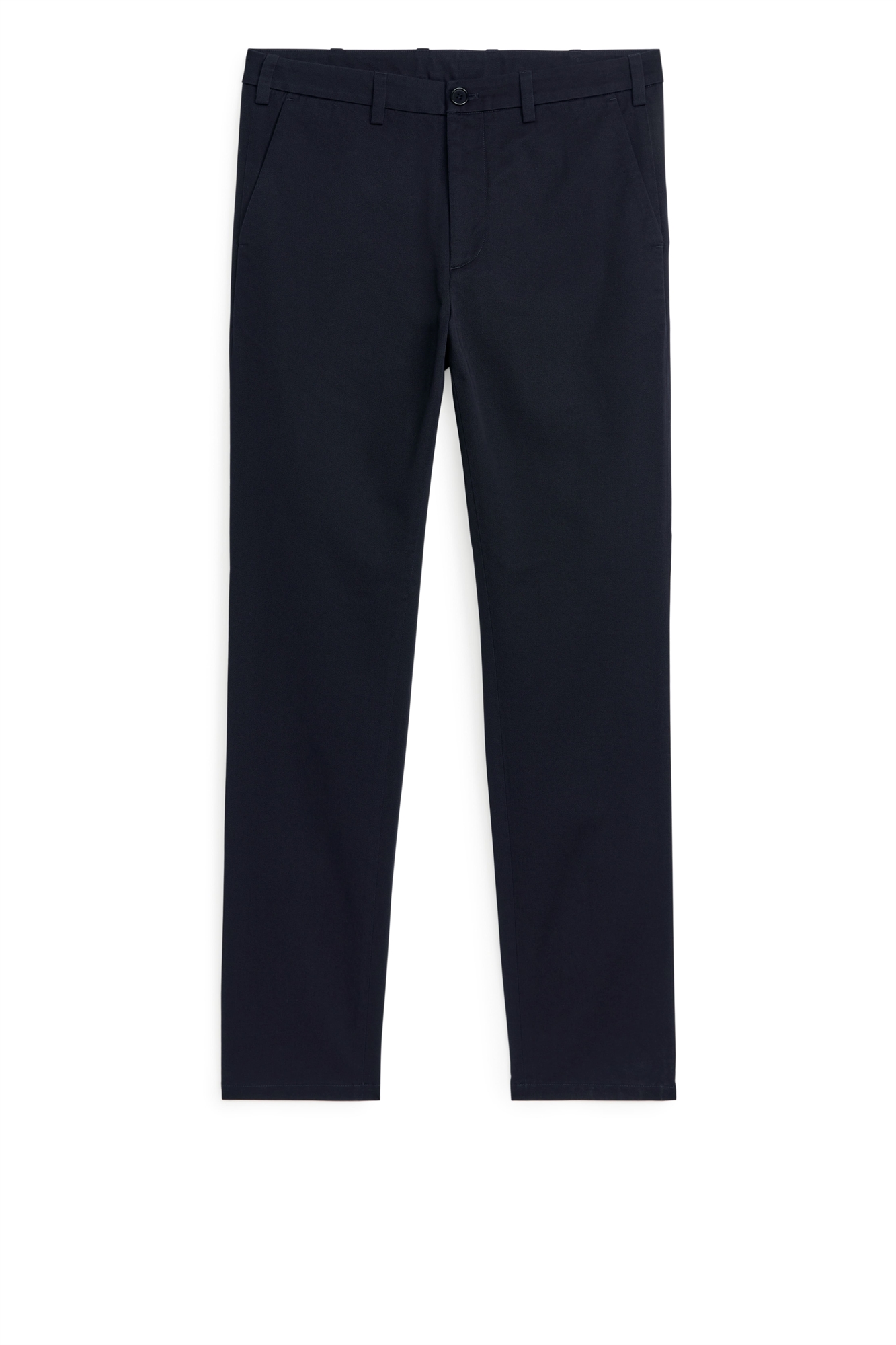 Повседневные брюки-чинос из хлопковой саржи средней плотности с чистым внешним видом. Зауженный крой с косыми карманами и накладными карманами на пуговицах сзади. Пояс с петлями для ремня. Ширинка на молнии.