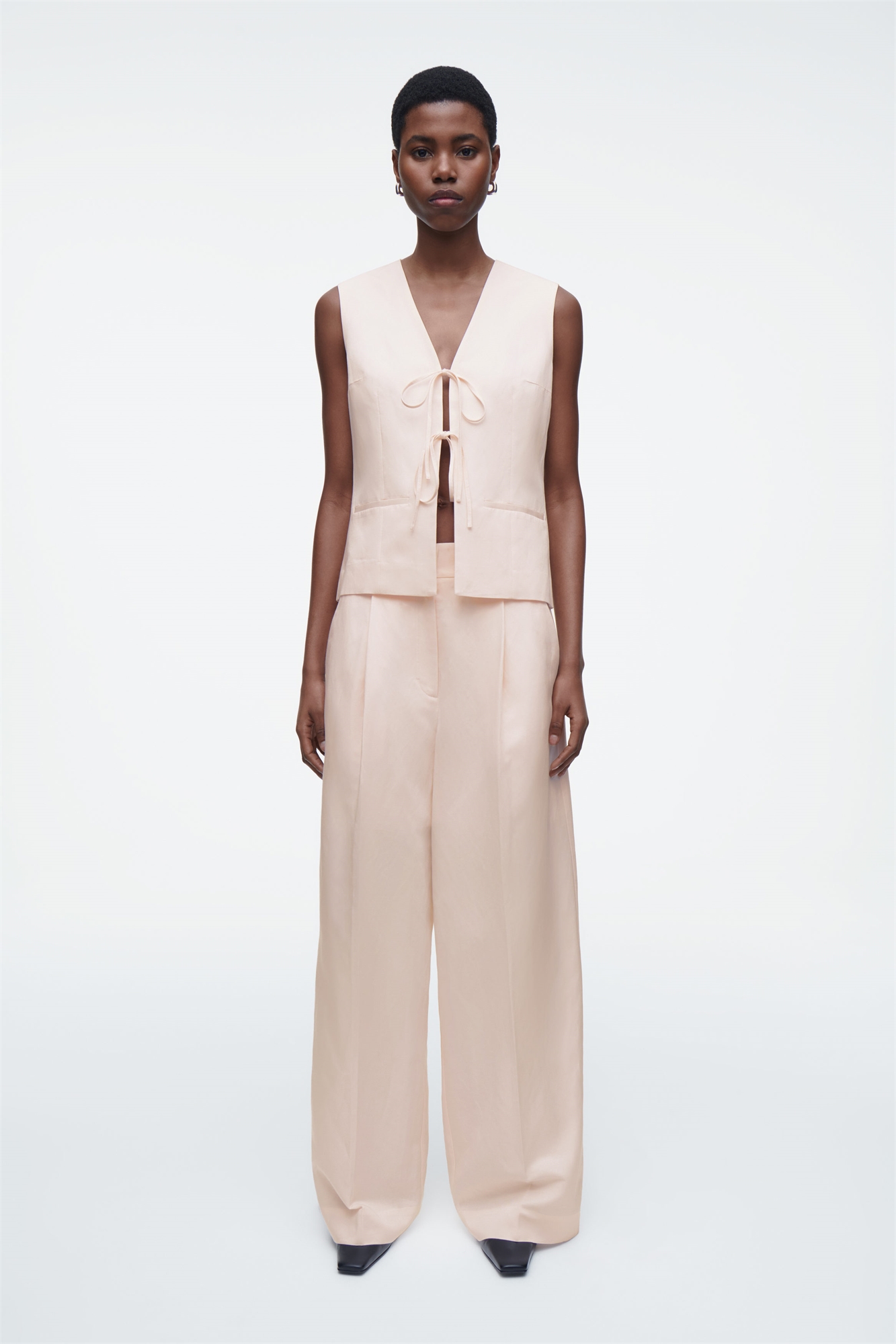 Эти темно-синие брюки с высокой талией, созданные из лиоцелла TENCEL™ и дышащего льна, имеют складки спереди, удлиняющие широкие ноги. Подол с длинными рукавами легко ниспадает до пола. Свободный крой Застежка на крючок и молнию TENCEL™ Lyocell изготовлен из экологически чистой древесины с использованием процесса, в котором перерабатывается 99% всех химических веществ и воды Оболочка: 80% TENCEL™ Lyocell, 20% лен. Без учета отделки / Сухая чистка Внутренняя длина ноги размера EU 36 составляет 72,5 см / Модель носит размер EU 36