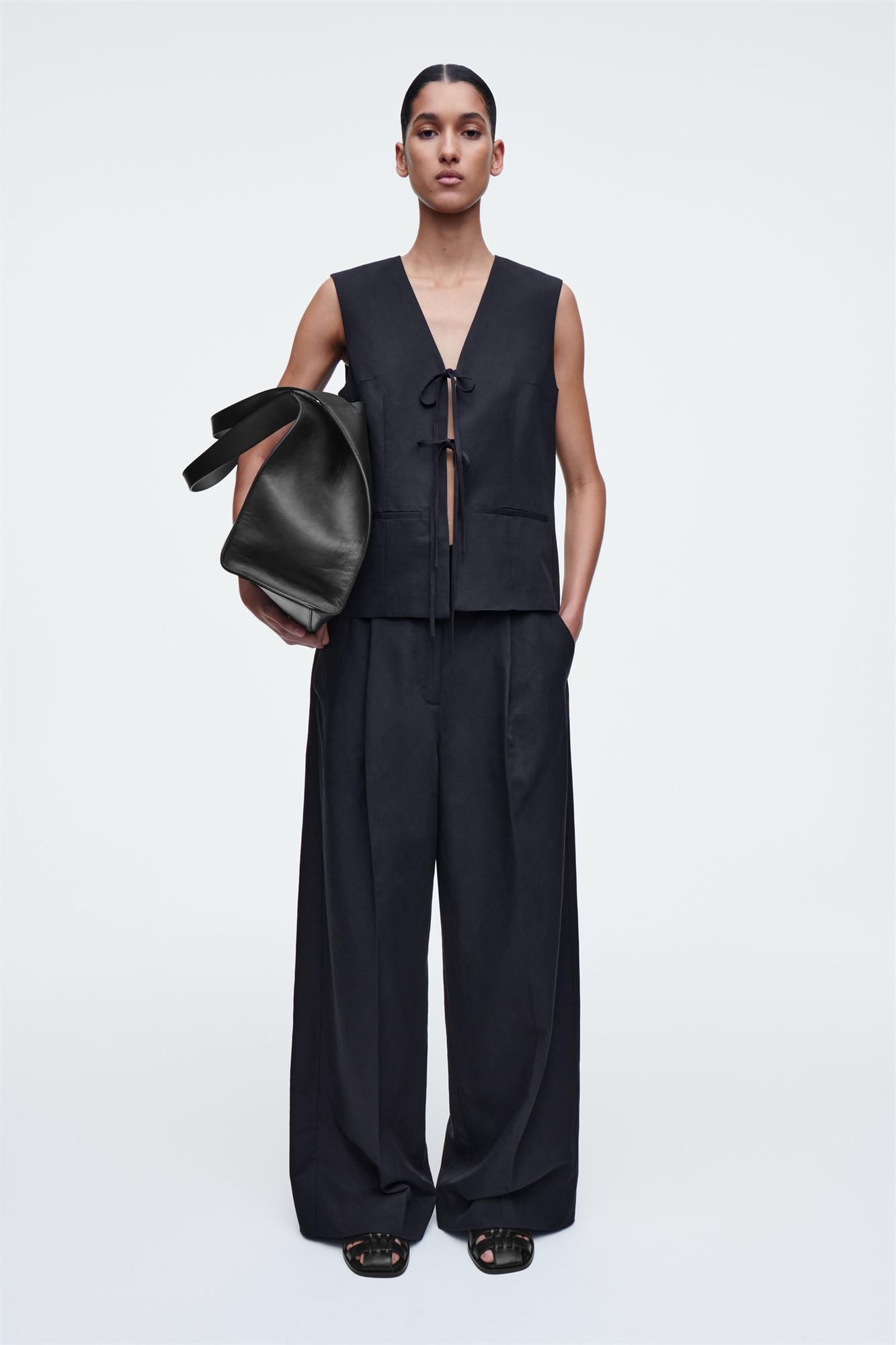 Эти темно-синие брюки с высокой талией, созданные из лиоцелла TENCEL™ и дышащего льна, имеют складки спереди, удлиняющие широкие ноги. Подол с длинными рукавами легко ниспадает до пола. Свободный крой Застежка на крючок и молнию TENCEL™ Lyocell изготовлен из экологически чистой древесины с использованием процесса, в котором перерабатывается 99% всех химических веществ и воды Оболочка: 80% TENCEL™ Lyocell, 20% лен. Без учета отделки / Сухая чистка Внутренняя длина ноги размера EU 36 составляет 72,5 см / Модель носит размер EU 36