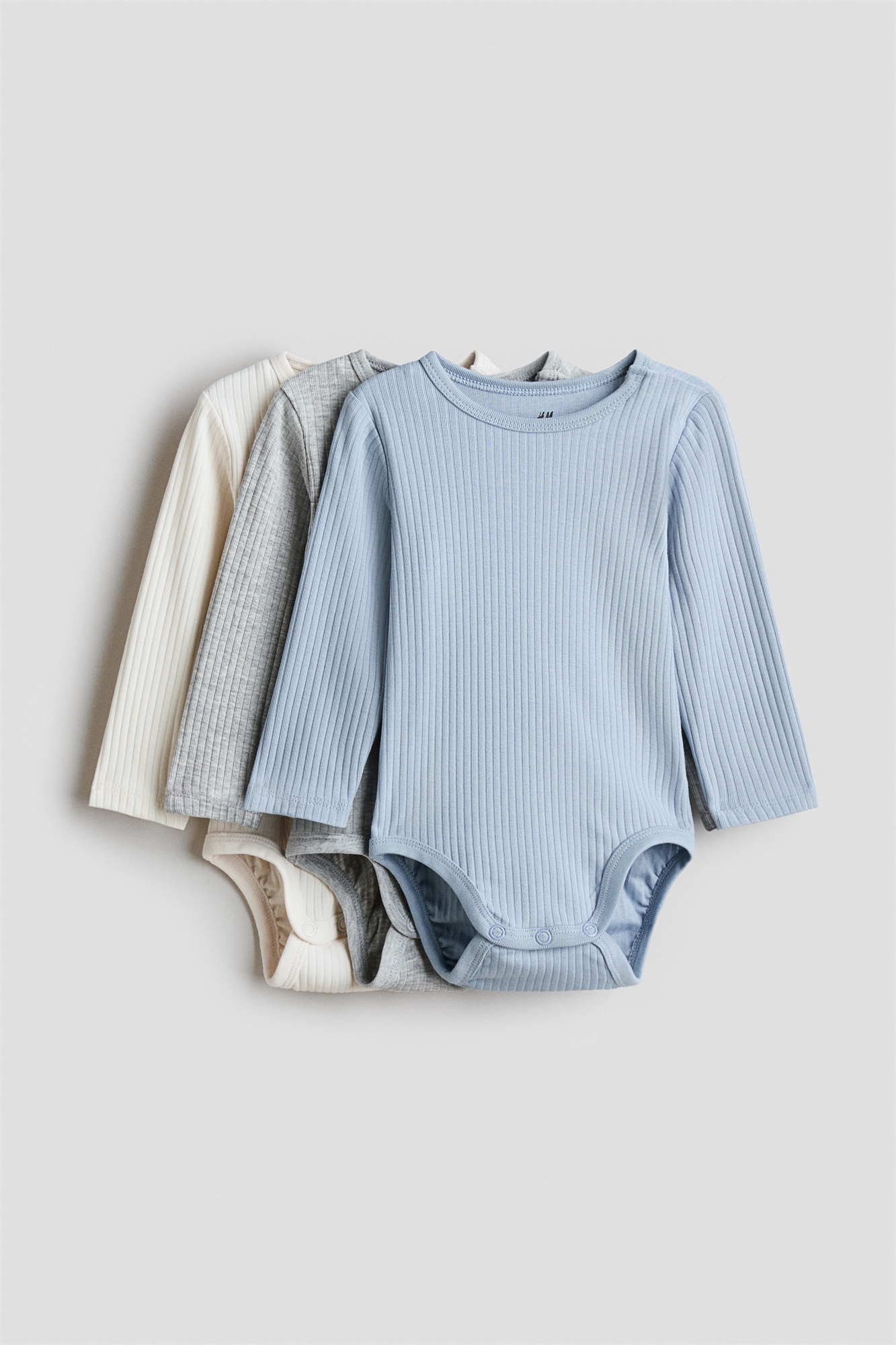 Боди с длинными рукавами из мягкого ребристого хлопкового джерси со скрытой застежкой на одном плече и застежками в промежности для удобства смены подгузников.
